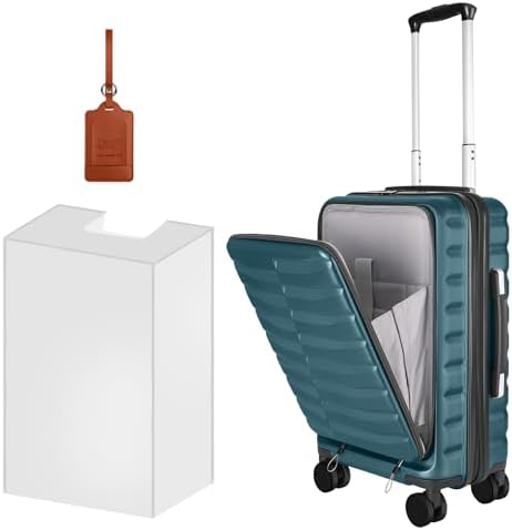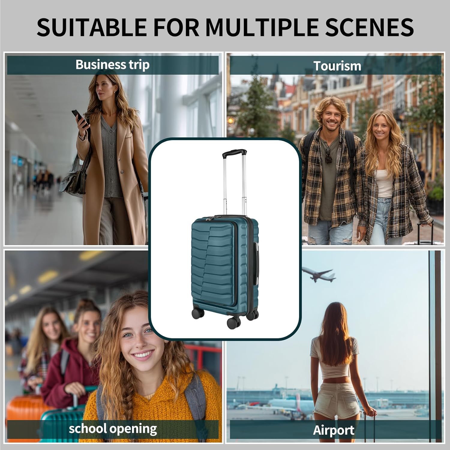 22×14×9 Airline Approved Carry On Expandable Luggage with Front Open Pocket, Spinner Wheels, ABS+PC Hardshell Small 20inch Suitcase with Protective Cover and Luggage Tag, Teal Blue