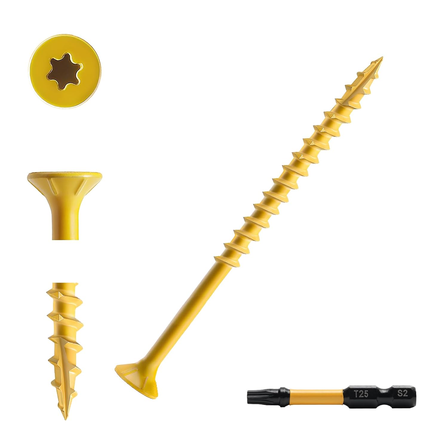 SELF-TAPPING POWER, ZERO PRE-DRILLING:Aggressive threads + sharp self-tapping tip bite deep into treated lumber, saving you time and effort on outdoor builds.
