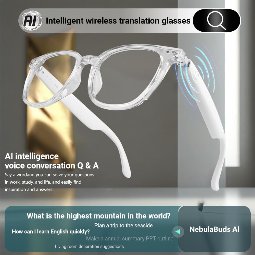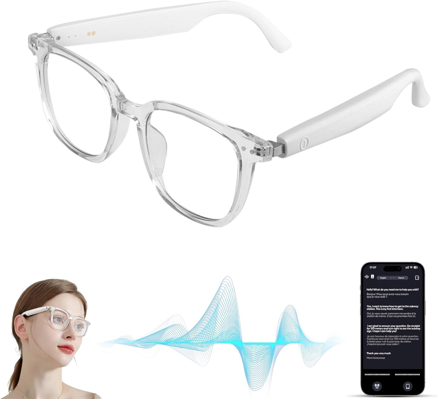 Ai Smart Translation Glasses Simultaneous Interpretation Glasses and Headphones, Bluetooth Language Translator for Men& Women-GS07 Transparent