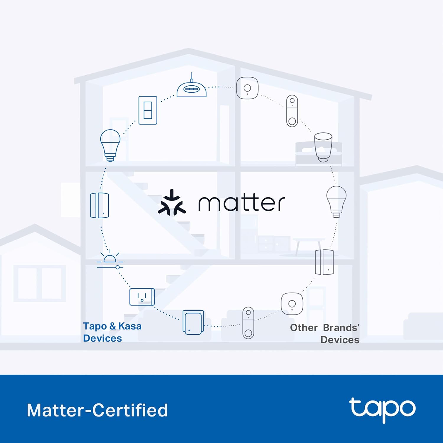 𝐌atter-𝐂ertified for 𝐔niversal 𝐂ompatibility - Matter-certified devices, regardless of brand, can work together and be controlled through most major smart home platforms like Alexa, Google Home, Apple HomeKit, and Samsung SmartThings.