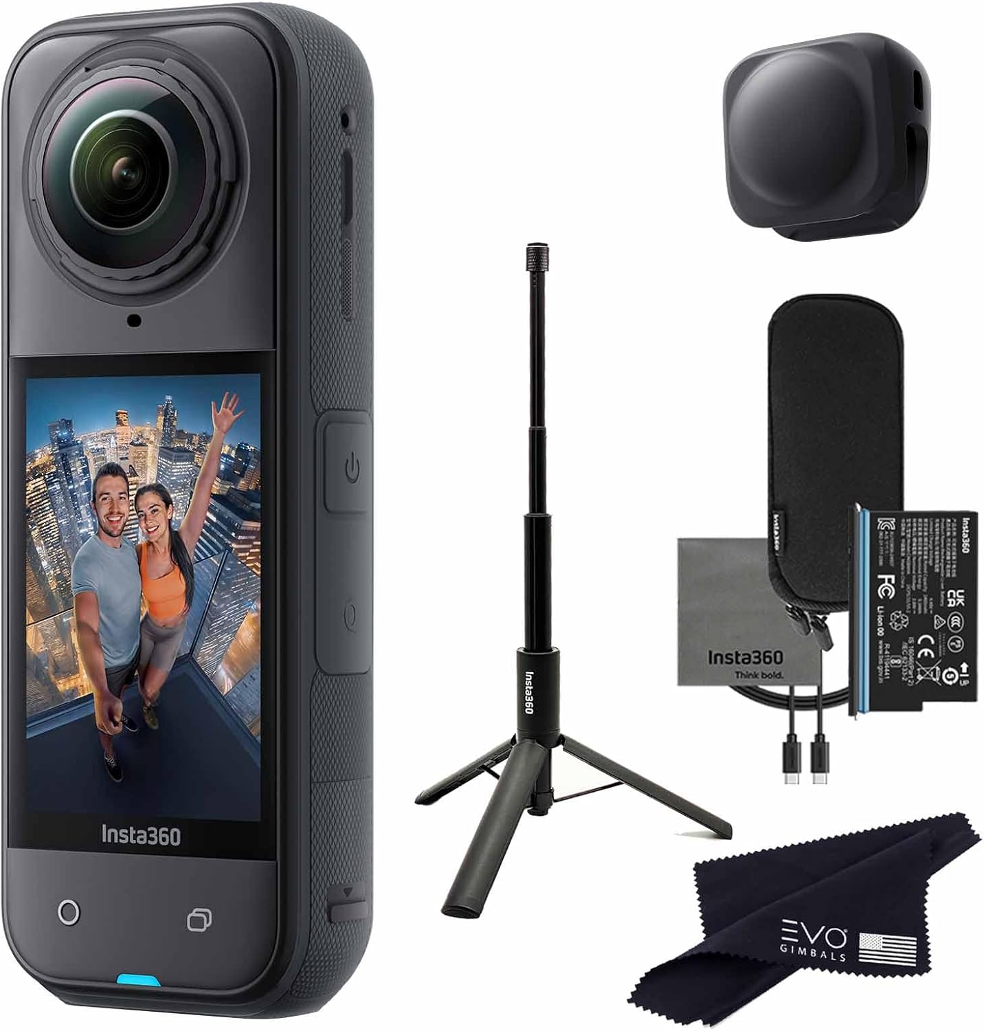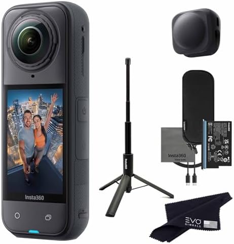 Insta360 X5 Tripod Selfie Stick Bundle -8K Waterproof 360 Action Camera with 1/2" Sensors, 8K 360 HDR Video,Perfect for Matterport 360 House Tour|Bundle Includes Tripod Selfie Stick, Lens Cap(No Card)