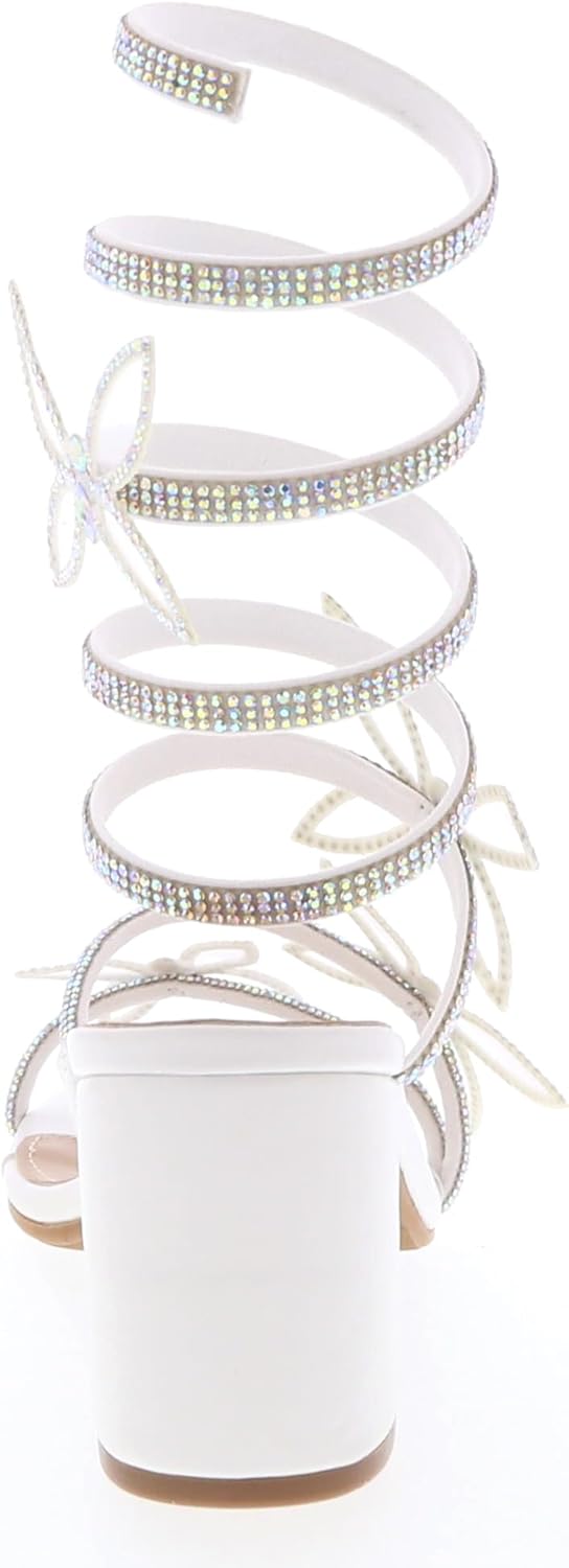 TOP Moda Diamond-29 Women's Butterfly Spiral Coil Wrap Dressy Block Heel Sandal, Non-slip sole, Rhinestone High Heel Sandals, For Wedding, Party, Prom, Evening Wear