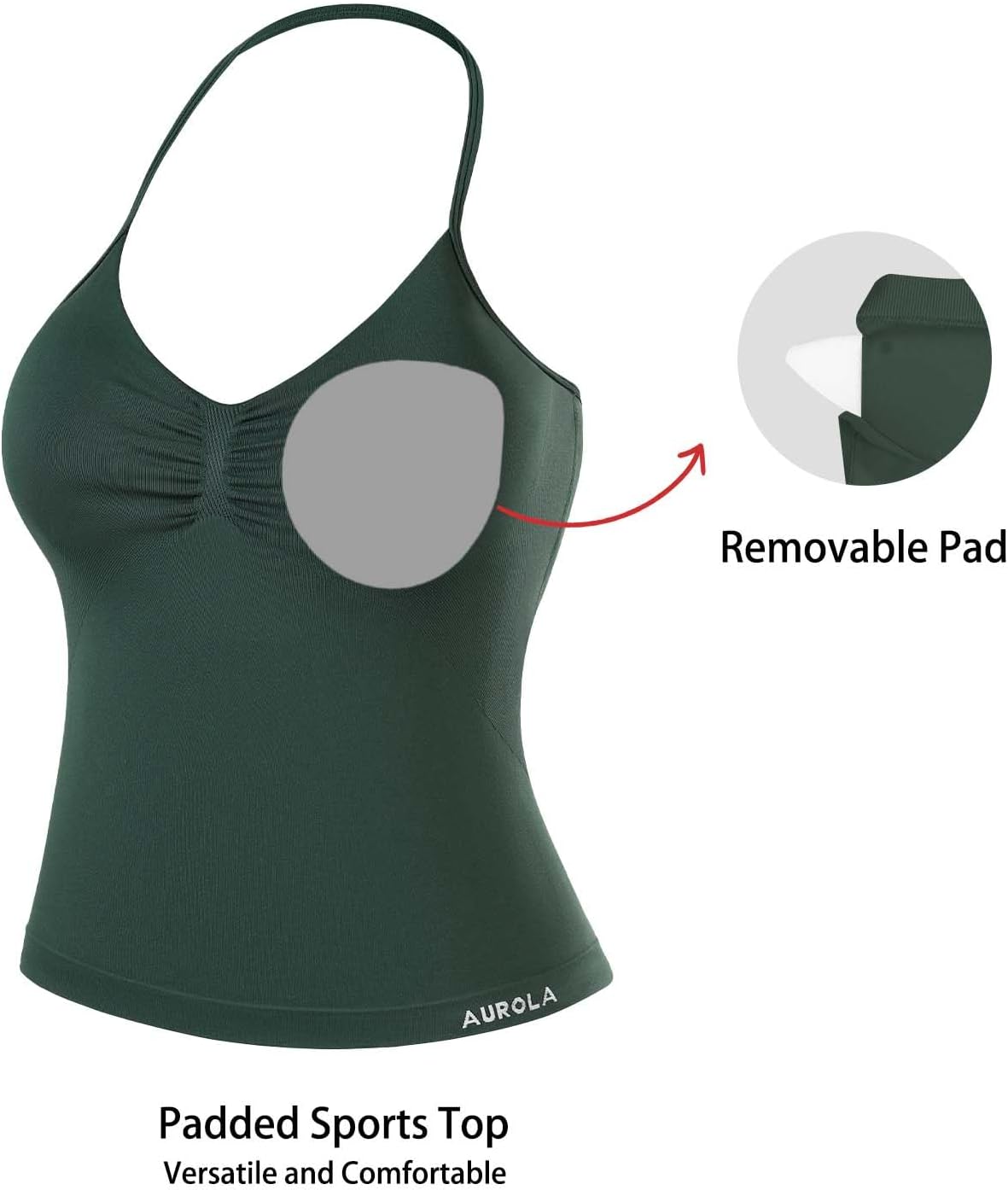 AUROLA Influence Longline Strappy Workout Halter Tops for Women,Removable Cups Padded Bras Impact Gym Yoga Sleeveless Top
