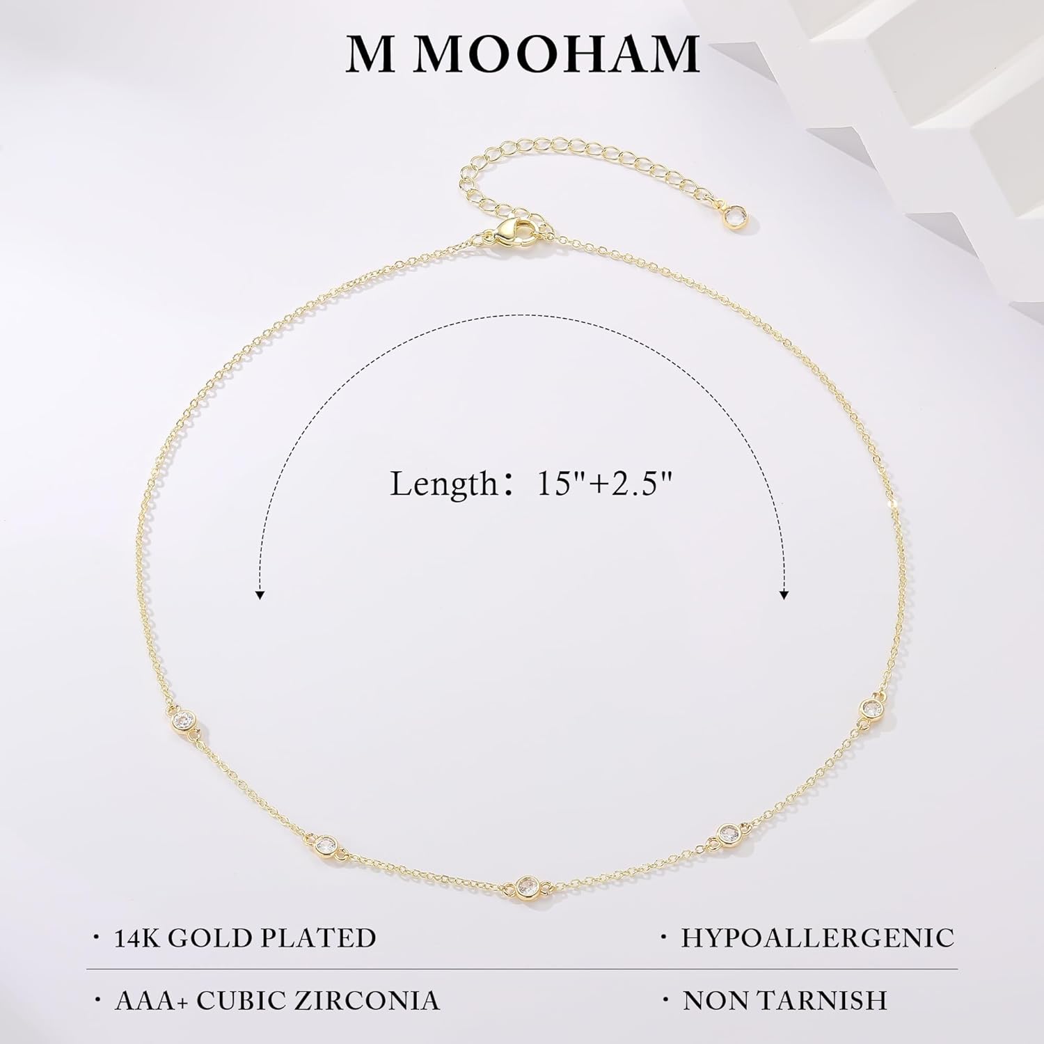 M MOOHAM Gold Clover Heart Pearl Butterfly Star flower Choker Necklace for Women - Dainty 14K Gold Plated Cubic Zirconia Cute Station Necklaces for Women Trendy Prom Jewelry Gifts