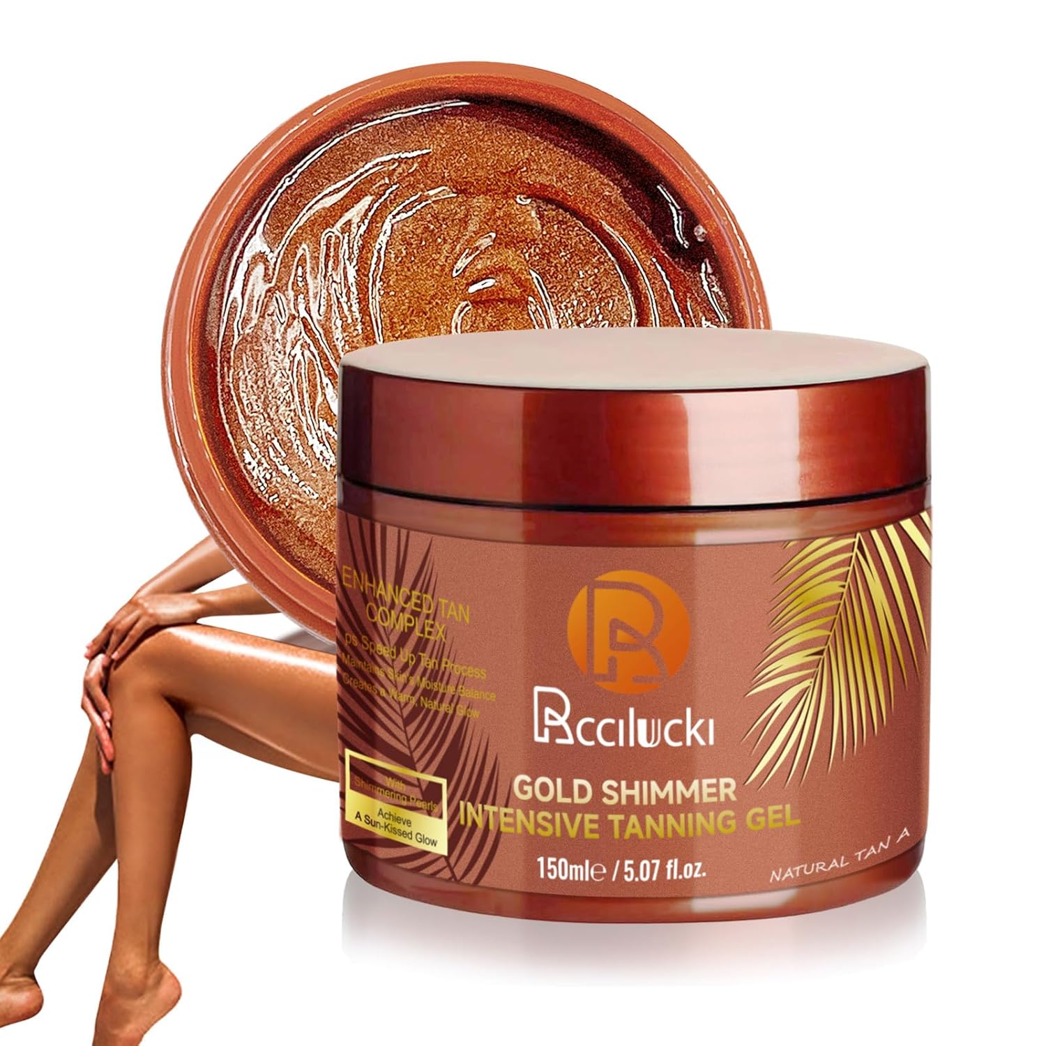 Golden Shimmer Tanning Gel-Browning Tan Accelerator-Hydrating Bronze Enhancer with Carrot & Coconut | Tanning Cream for Sun/Tanning Bed Use (5 Fl Oz)