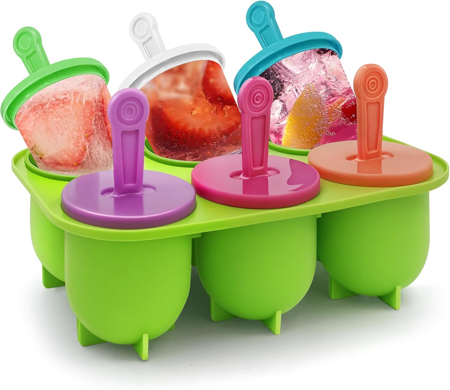 【Creative】Featuring 6 vibrant colors and reusable sticks, these molds inspire creativity and excitement, making every treat a fun, mess-free experience.