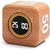 Rotating Productivity Timer 5, 25, 10, 50 Minutes Preset, Desk Cube w/Gravity Sensor for ADHD, Mute Functions, Ideal for Work, Study, Kitchen, Back to School (1, Wood Grain Finish)