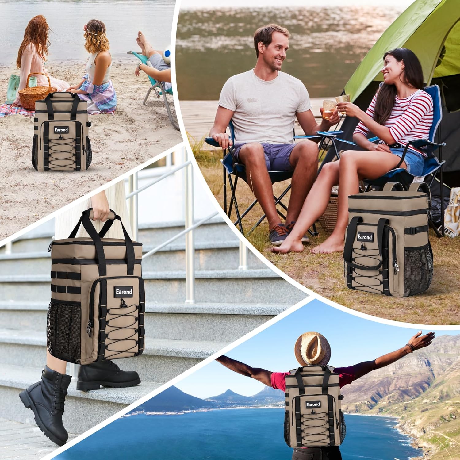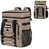 25L Insulated Cooler Backpack with Waterproof Zipper & Multi-Compartment Design Leakproof Lunch Bag for Beach, Camping, Office - Spacious Thermal Light-Weight Backpack for Men and Women-Khaki