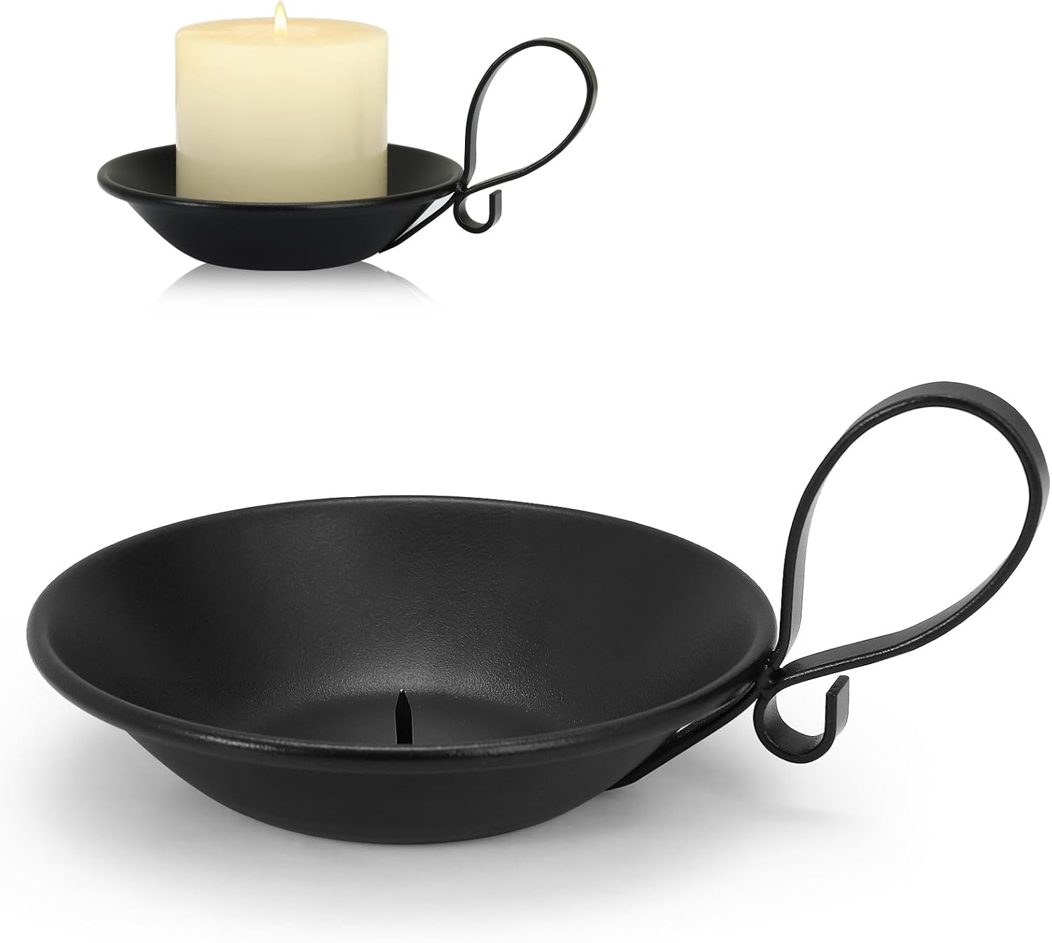 Matte Black Iron Candle Holder with Handle, Iron Pillar Candle Holders with Safety Spike for Pillar/Ball Candles, Table Centerpiece Decoration
