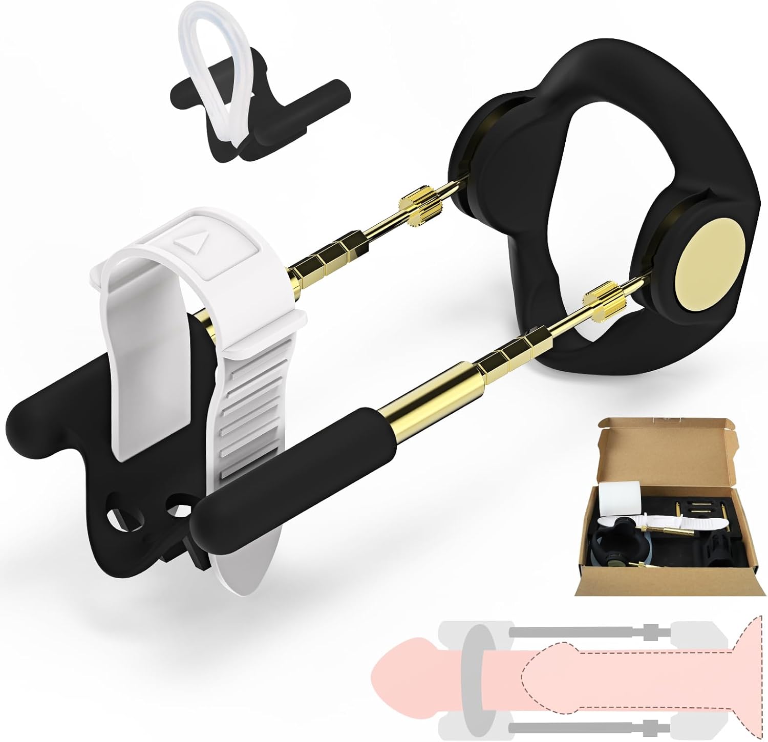 Unrivalled black and gold aesthetics and quality construction: Our sleek Black and Gold Traction Kit Adult Sex Toys pair a matte black ABS plastic frame with gleaming nickel-plated brass rods to create a bold, long-lasting look. Unlike other penis stretcher devices with exposed threads, ours has a smooth metal rod so you can wear it without worrying about it rubbing against your skin