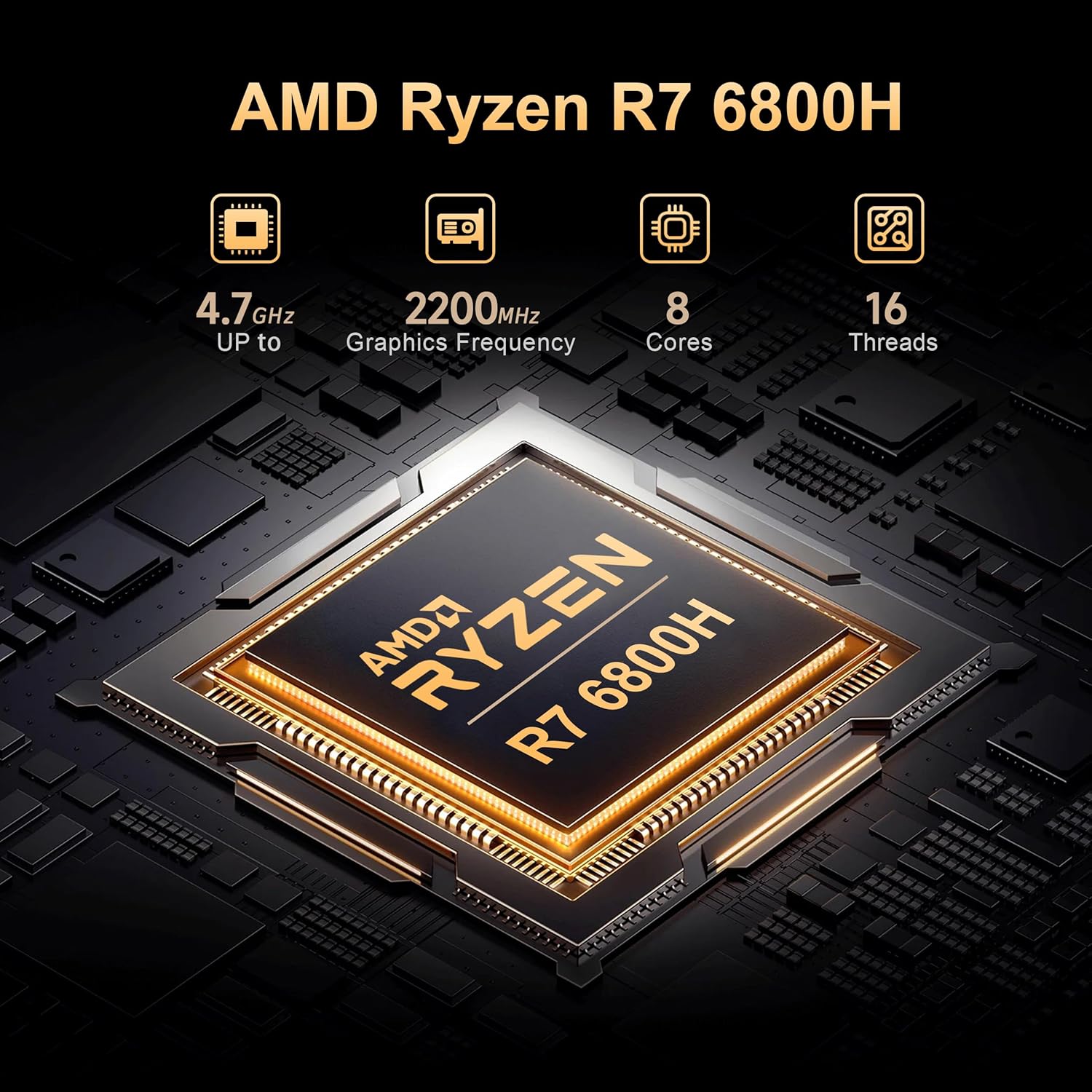 【High Performance Business/Office Mini PC】Beelink SER5 Max Mini pc is equipped with the powerful AMD 6000 series processor - AMD Ryzen R7 6800H ( Up to 4.7GHz, 8Cores 16 threads, 16MB/L3 4MB/L2 Smart Cache) Handling daily tasks without stress: Office, Outlook, Access, Visio, PS, CAD, Ai and etc. Integrated with 12 core AMD Radeon 680M Graphics, frequency 2200MHz, delivers strong gaming performance, games recommend: CS:GO, GTA V, Call of Duty, WWII, PUBG, DOTA 2, LOL, etc