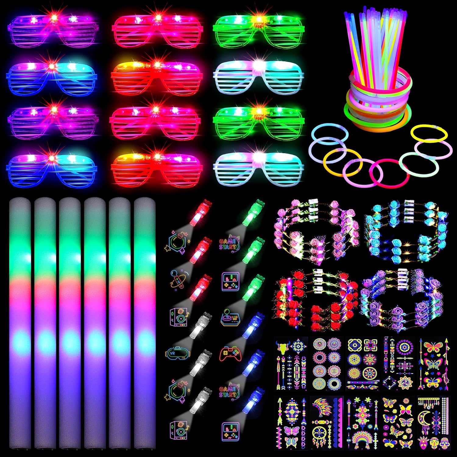 Safe materials: the colorful LED party favors are crafted from premium material, adhering to the highest safety and quality standards; our glasses are made from durable plastic, while the LED garlands use EVA foam material, lightweight and reliable, the sticks are designed to withstand stretching, twisting and turning due to their thick and resilient materials