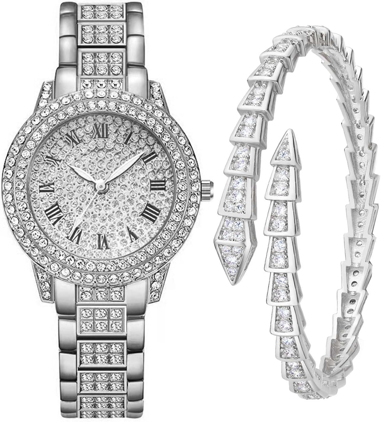 Watch for Women Interior Full Diamond Bling Rhinestone Iced Out Quartz Crystal Stainless Steel Ladies Wrist Watch