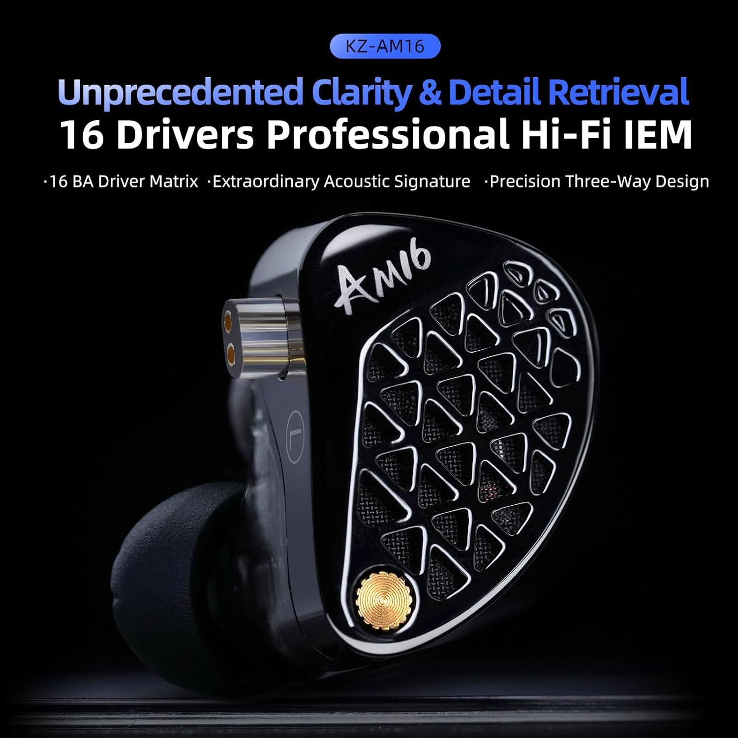 KZ AM16 in Ear Monitor Headphones 16BA Drivers HiFi IEM Earphones High Clarity Gaming Earbuds Clarity in All Frequency Stereo Sound Comfortable Headphones for Musicians (Deep Base, Nomic)