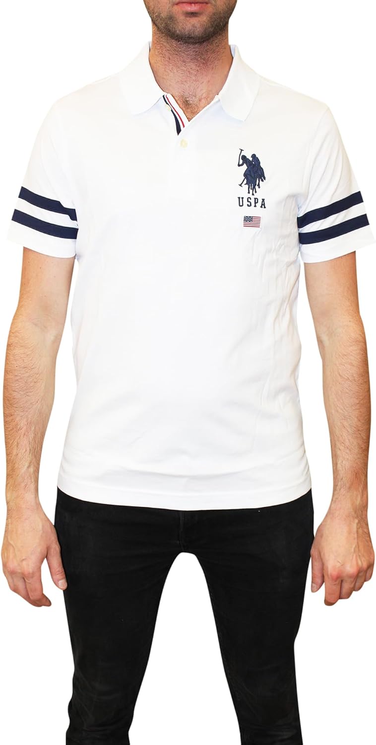 Established in 1890, the U.S. Polo Assn. is the governing body for the sport of polo in the united states. Indulge yourself in the iconic sophistication, luxury and comfort that the U.S. Polo Assn. products provide. You deserve the best. Elevate your everyday polo game with the U.S. Polo Assn. Men's Slim Fit Color Block Jersey Polo Shirt. Made from 100% premium cotton, this short sleeve polo delivers breathable comfort and a tailored slim fit that sharpens your silhouette. A standout detail—red, white, and blue ribbon taping under the button placket—adds a subtle touch of America, while the double sleeve stripes and embroidered USPA logo with flag on the chest bring sporty heritage vibes. Finished with a ribbed collar and cuff trim, this polo is an effortless fusion of classic and modern style. Ideal For: Weekend wear, smart-casual events, or sporty everyday style.