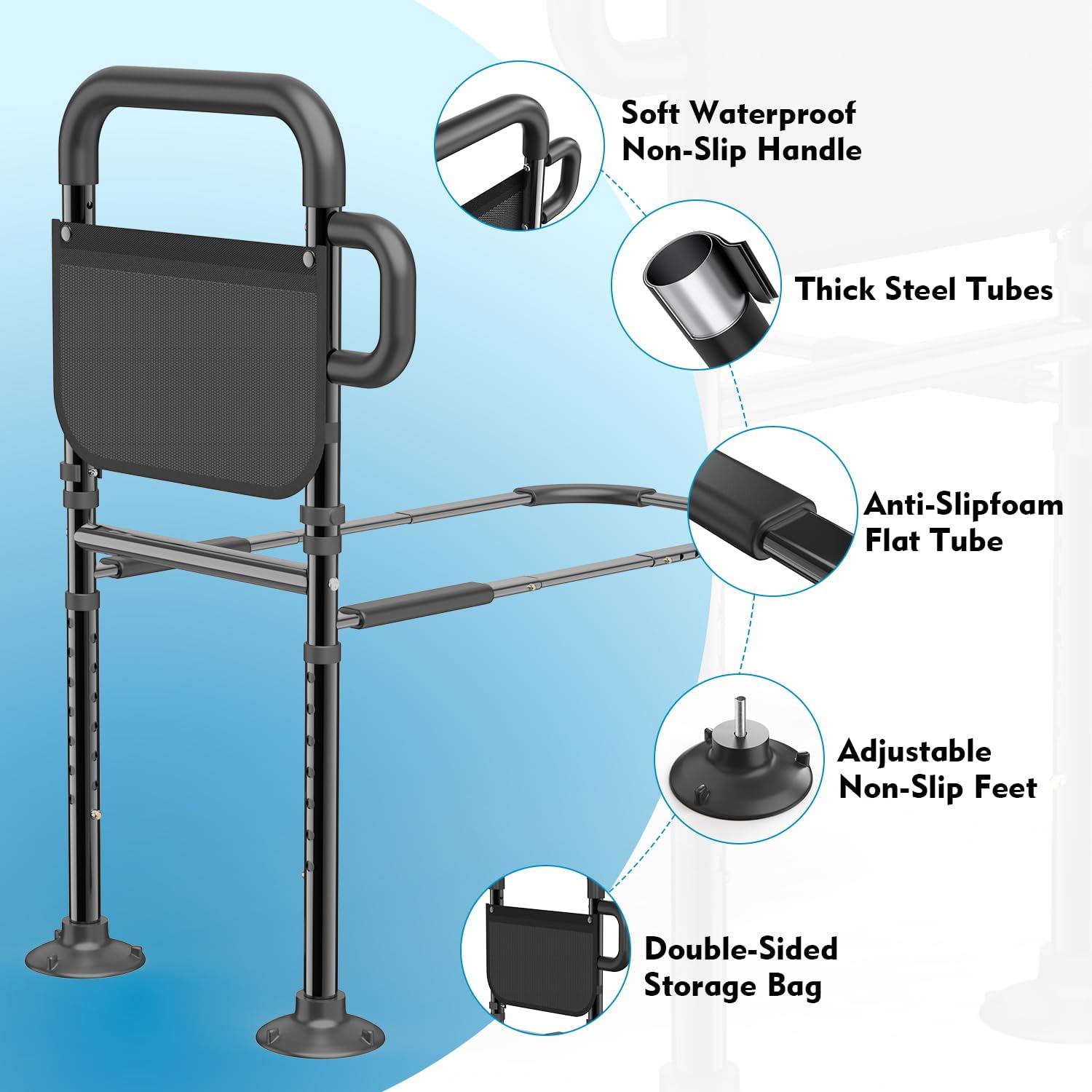 Bed Rails for Elderly Adults Safety, ASTM Approved Adjustable Bed Assist Rail for Seniors, Non-Slip Ergonomic Handle, 400lb Weight Capacity, Storage Pocket & Fixing Strap, Fits Twin/Full/Queen/King