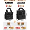 Expandable Double-Layer Lunch Box for Men: Expands from 10.5" x 7.5" x 9.1" to 10.5" x 7.5" x 10.5". Two separate insulated compartments that work together to keep hot foods warm and cold items chilled. Designed with multiple pockets: built-in mesh storage pocket on the top for utensils, two elastic side pockets for water bottles, and a front zippered pocket for other essentials. Smart organization and easy access make every lunch break efficient and hassle-free