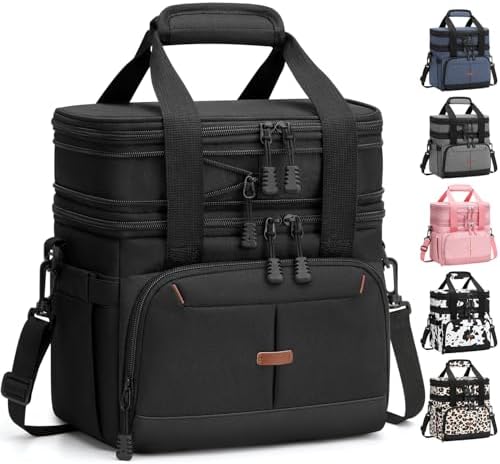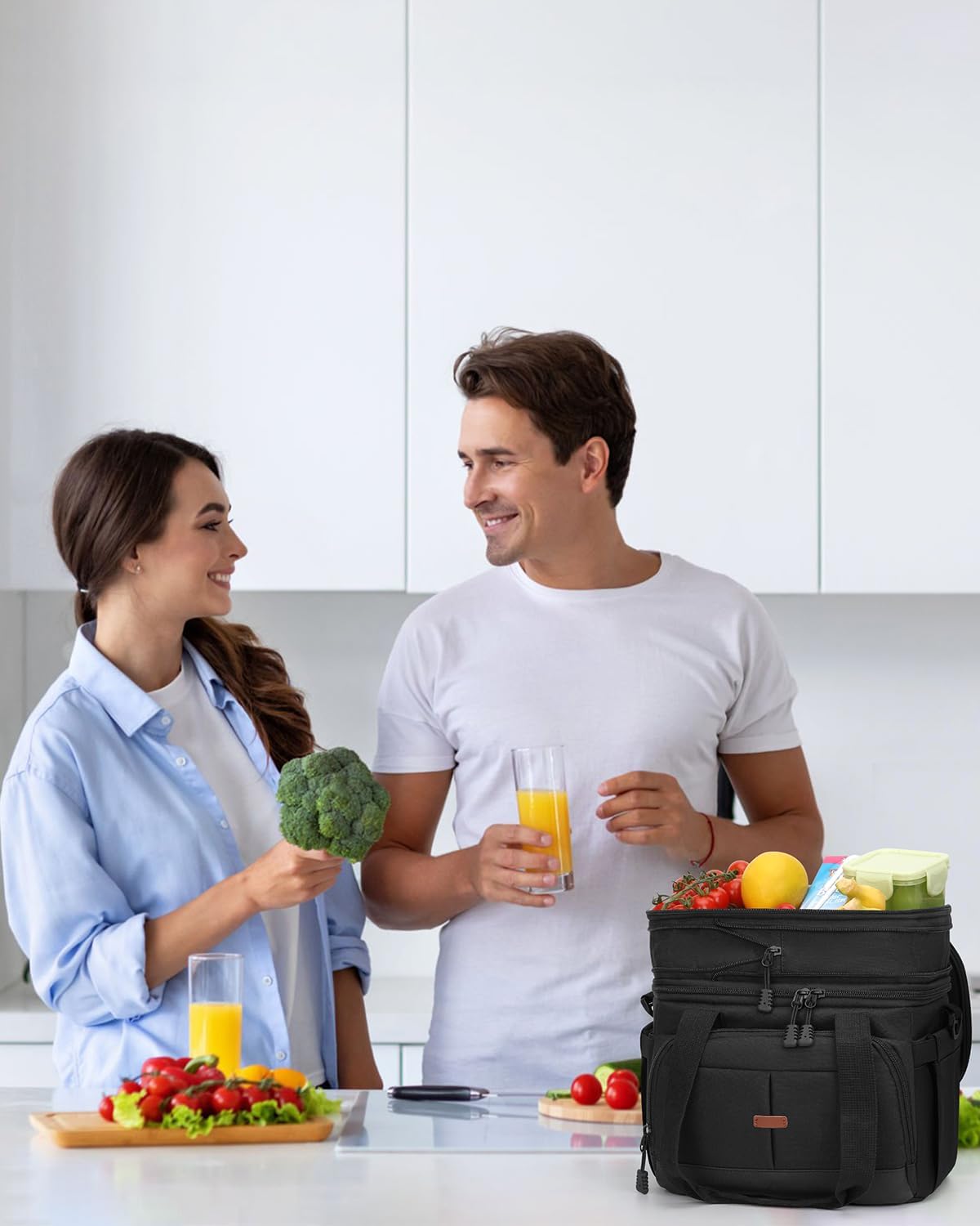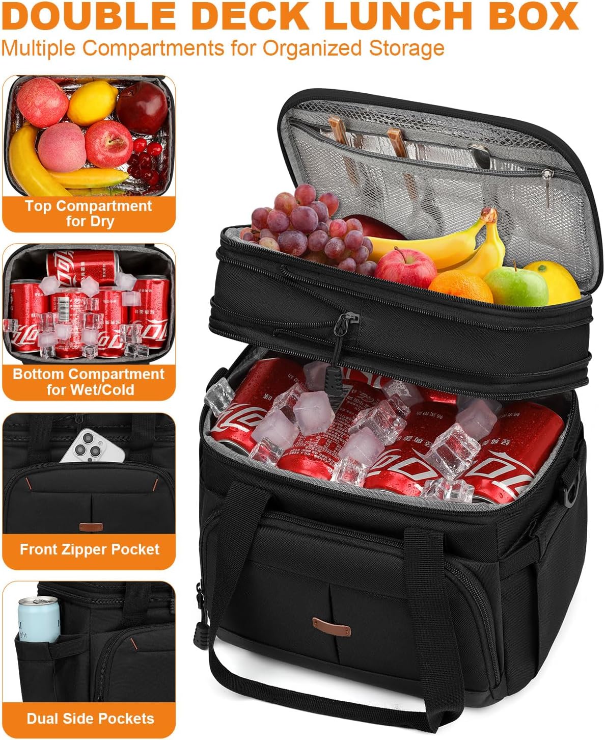 Lunch Box For Men Women Double Deck Insulated Lunch Bag For Men Woman Leakproof Expandable Cooler Bag with Adjustable Shoulder Strap for Work Picnic School(Black,Medium)