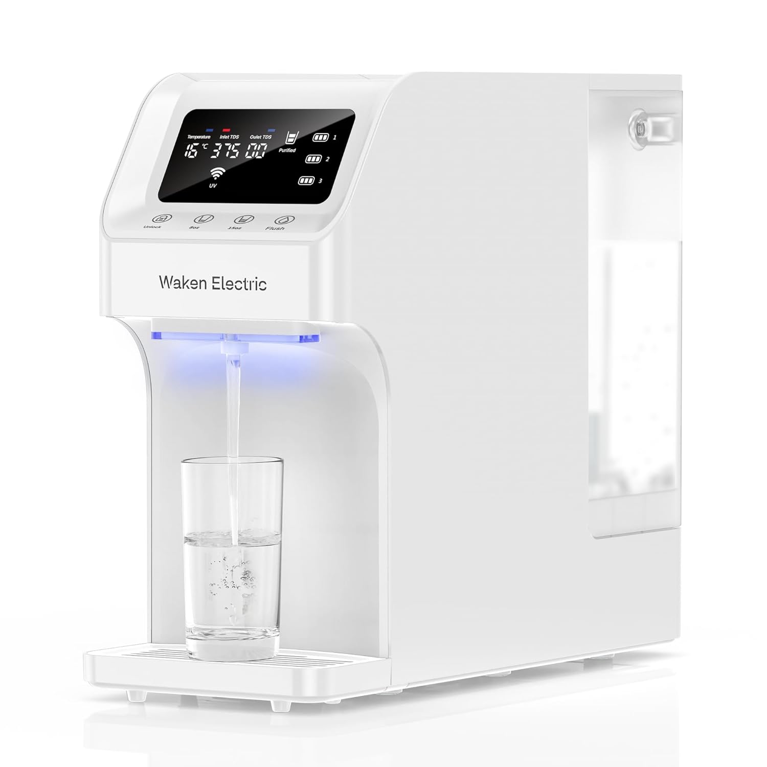 Exceptional Water Purification Efficiency: The Waken Electric achieves an impressive 4:1 pure-to-drain ratio, making it the most efficient RO system on the market. Its innovative multi-filtration recycling technology ensures optimal water utilization. Furthermore, the rapid dispense flow rate of 418 gallons per day allows you to enjoy a cup of purified water in just about 14 seconds.