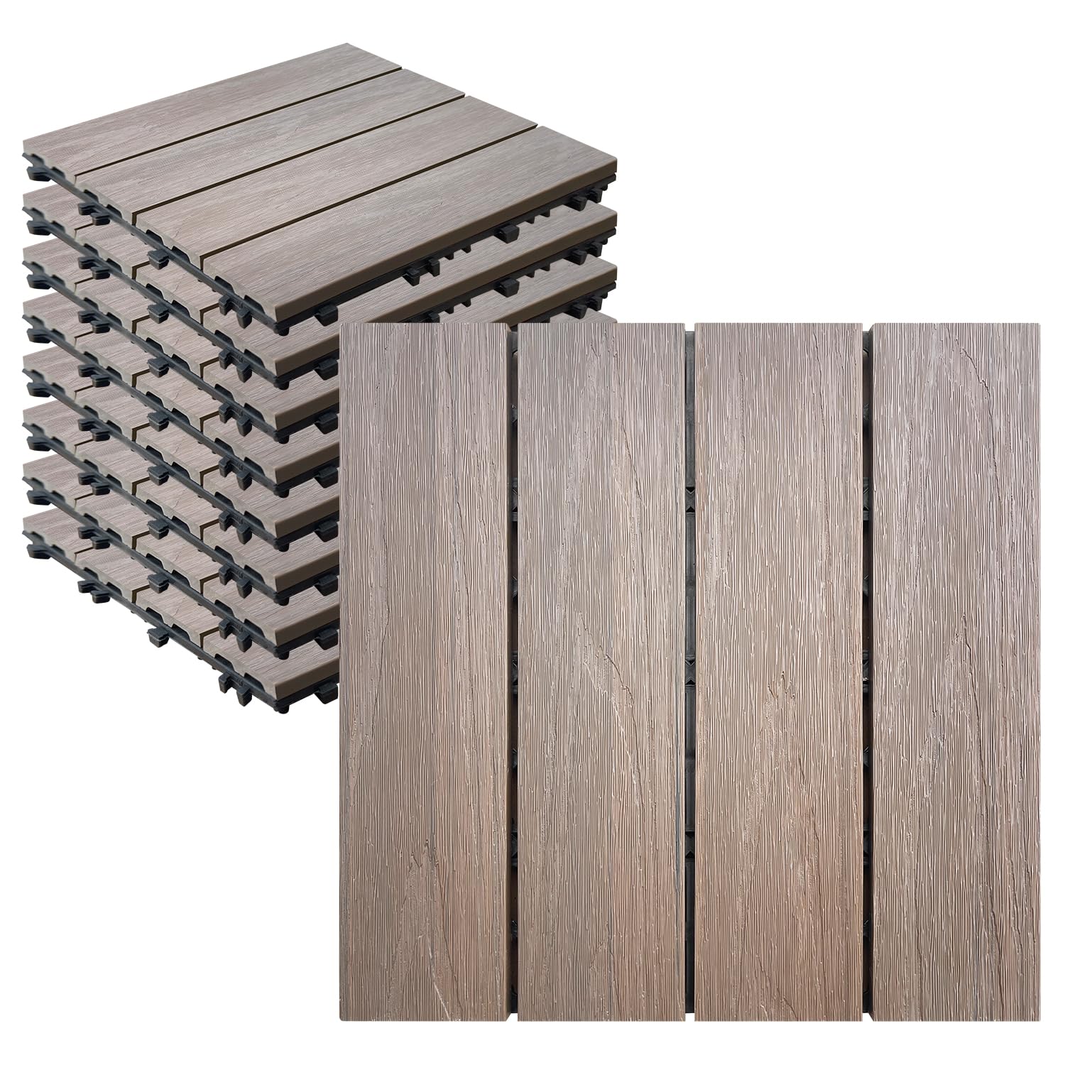 Interlocking WPC Decking Tiles – 12”x12” Rosewood Outdoor Flooring, Waterproof & Durable Composite for Patio, Garden & Indoor Use, Easy DIY (9, Rosewood, 11.61 x 11.5 x 0.79 inches)
