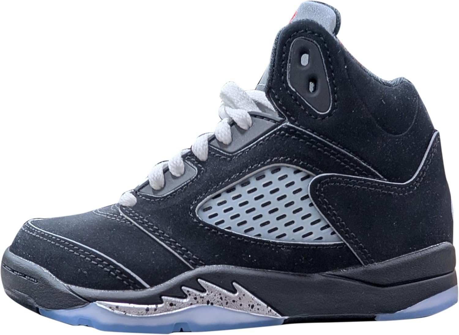 The Air Jordan 5 Retro OG 'Black Metallic Reimagined' PS presents a contemporary take on the classic AJ5 design, boasting a daring black upper with metallic silver highlights and the signature reflective tongue. This version honors the iconic style while introducing modern touches for a fresh appearance. Tailored for preschoolers, it ensures a cozy fit and robust construction for daily wear. This reimagined version is ideal for young sneaker enthusiasts eager to sport a legendary silhouette. Secure a pair and let your little one strut in style!