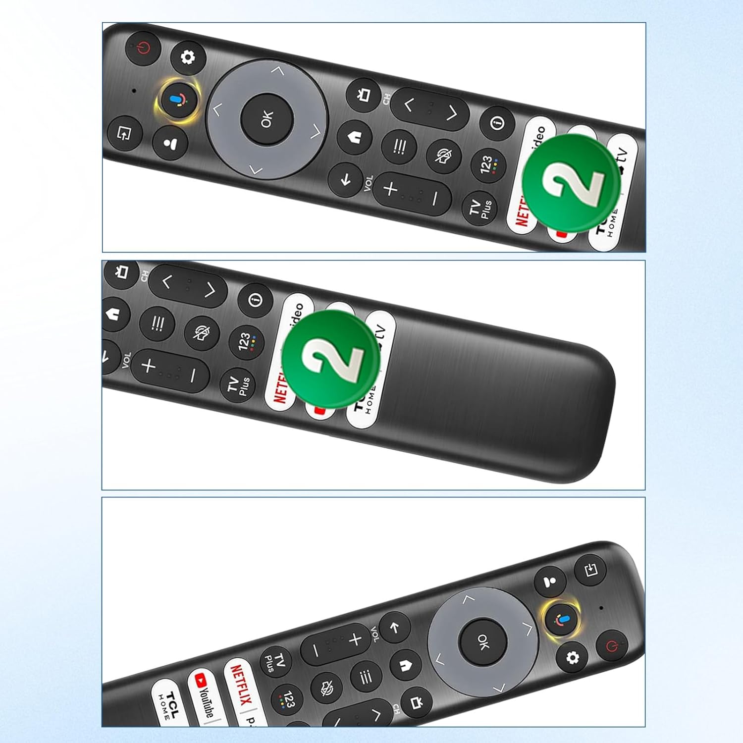 short press the "Google Assistant" button, then pressing the "HOME" and "OK" buttons for 5s until the TV screen shows that the pairing is completed. with Netlfix Prime YouTube TCL AppleTv Buttons