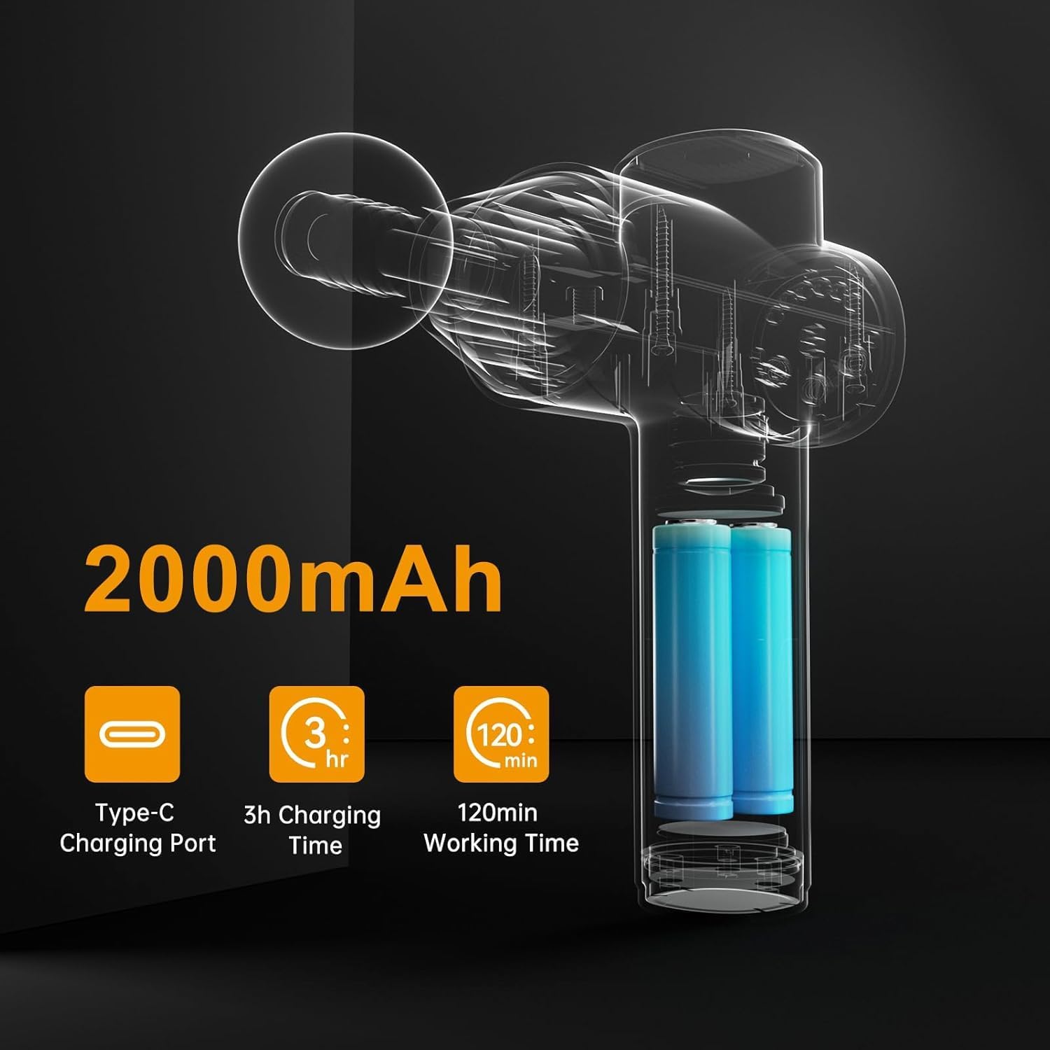 Quick Sore Relief: The massager gun features 7mm stroke length, providing deep tissue relief to ease muscles and reduce fatigue. Suitable for athletes, office workers, seniors, and anyone seeking enhanced muscle recovery and comfort