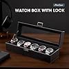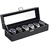 ProCase 6 Slot Watch Case Box for Men, PU leather Man Watch Organizer with Soft Pillow, Lockable Watch Collection Storage Holder with Glass Display Lid -AllBlack
