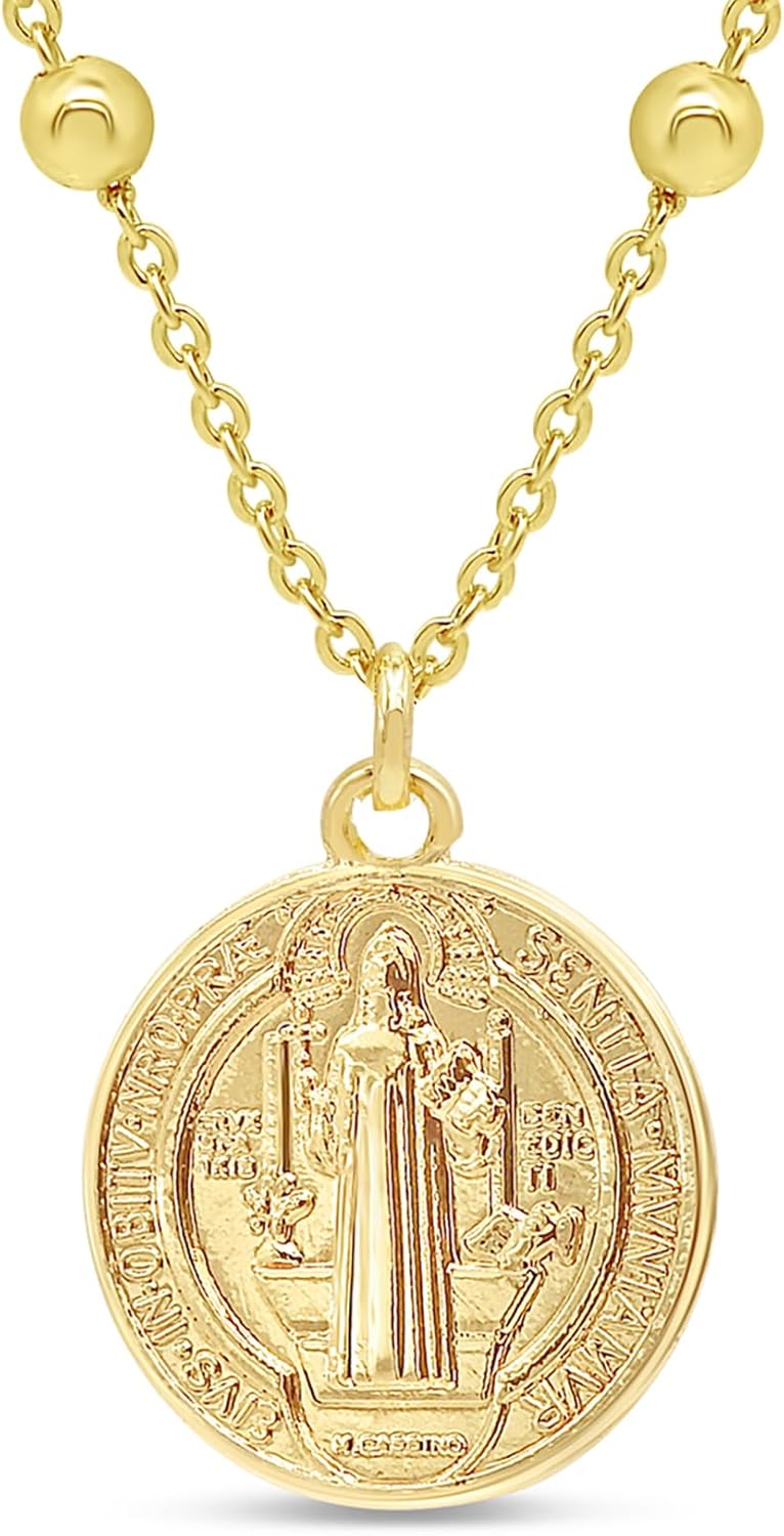 14k Gold Plated Catholic Medallion Necklace, 17.5 Inches
