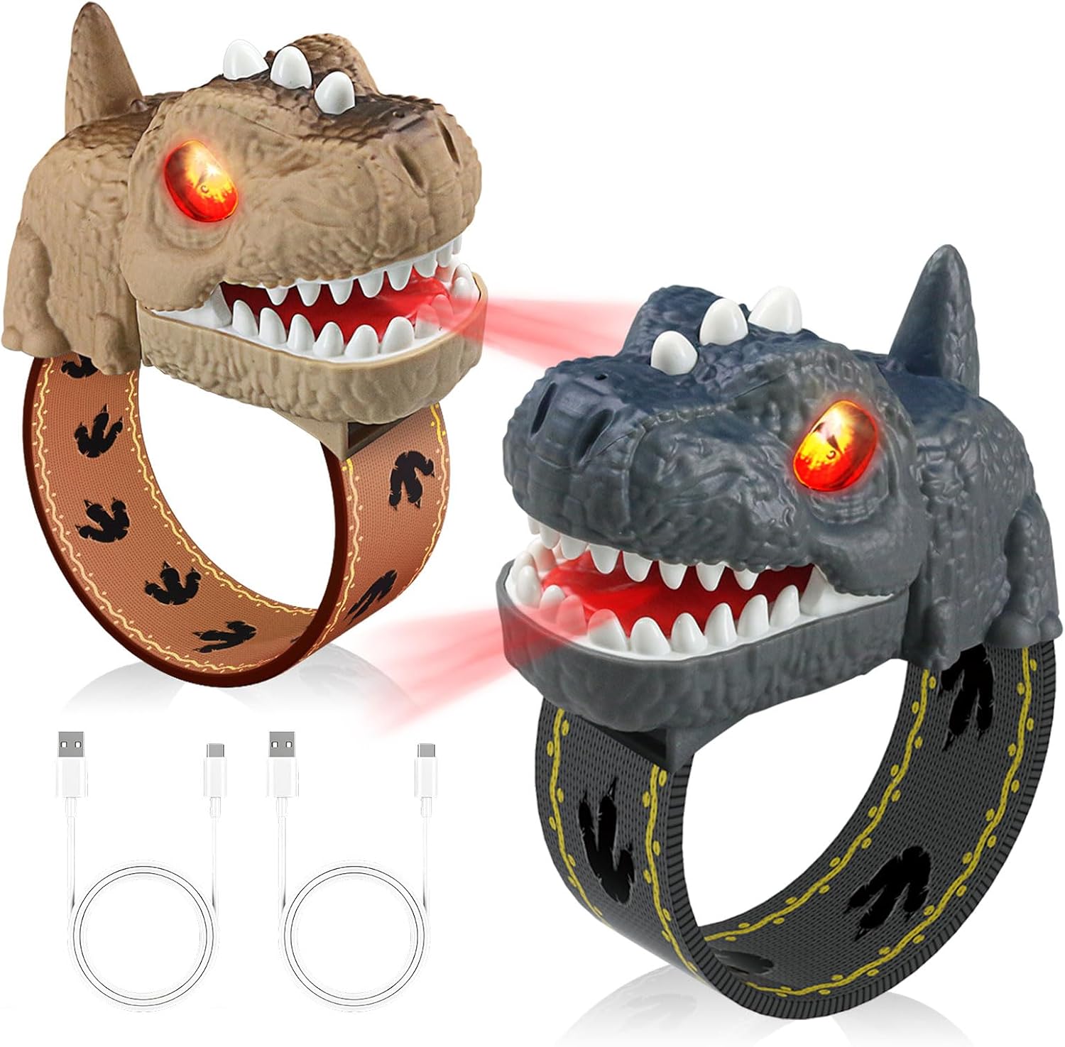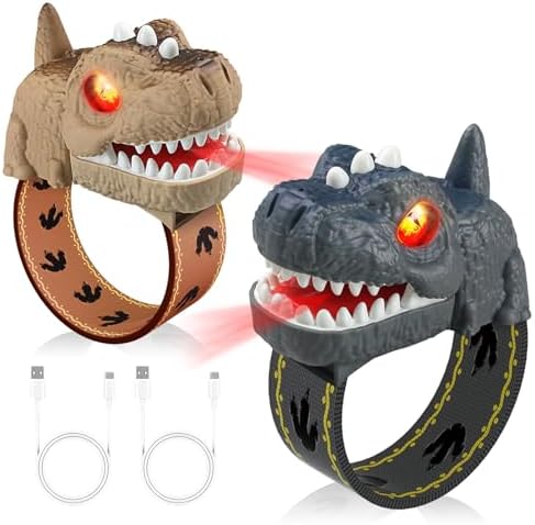 【Dinosaur Wrist Walkie Talkies 2 Pack】This kids walkie talkies are designed in the cute tyrannosaurs rex shape with realistic 3D eyes and the mouth that emits a red light, to capture the imagination of children. The T-Rex dinosaur toys walkie-talkies come with adjustable wristbands that free up children's hands, making it a trendy and popular toy for hiking, camping, hunting and adventures, suitable for multiplayer games