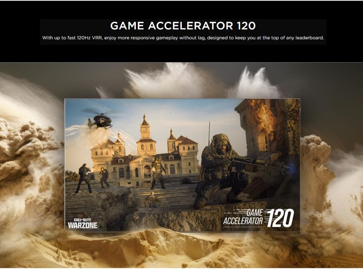 Game Accelerator 120: Offers up to 120Hz Variable Refresh Rate (VRR) for smooth and responsive gaming.​