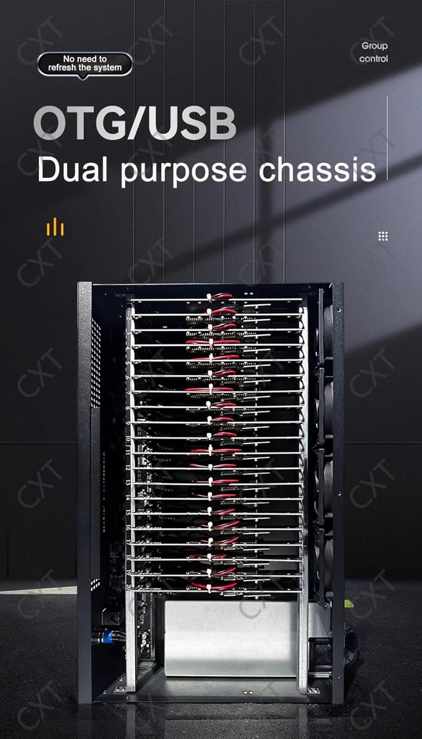 Whats is Box Phone Farm ? It is a piece of equipment that removes the phone screen/battery/camera/sim slot, integrates them into a chassis, and works with click farm software to achieve group control functions. 1 box contains 20 mobile phone motherboards. The size of the box and the number of motherboards are fixed ,Install the click farm software on your computer and you can do batch operations.