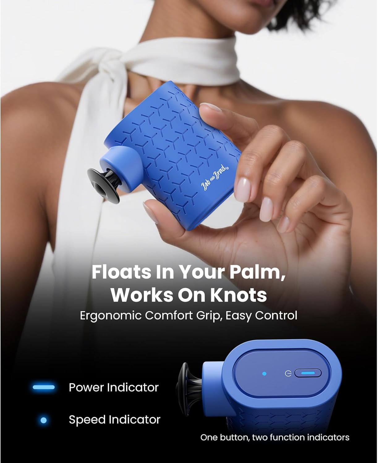 Ergonomic Design & One-Button Simplicity: The compact massage gun simplifies muscle relief with its intuitive single-button design and dual LED indicators, just tap to cycle through 3 speed levels. Crafted for ultimate comfort, its soft-touch silicone grip with geometric patterning resists slipping, while the compact, palm-sized shape lets you easily target sore shoulder, back, or leg with one hand. No wrist strain, no complicated apps or settings-just pure, simple relief whenever you need it.