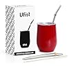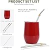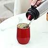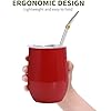 Yerba Mate Cup with Lid, 2 Bombillas, Cleaning Brush, 11.8oz Stainless Steel Double-Wall Insulated Gourd (Red)