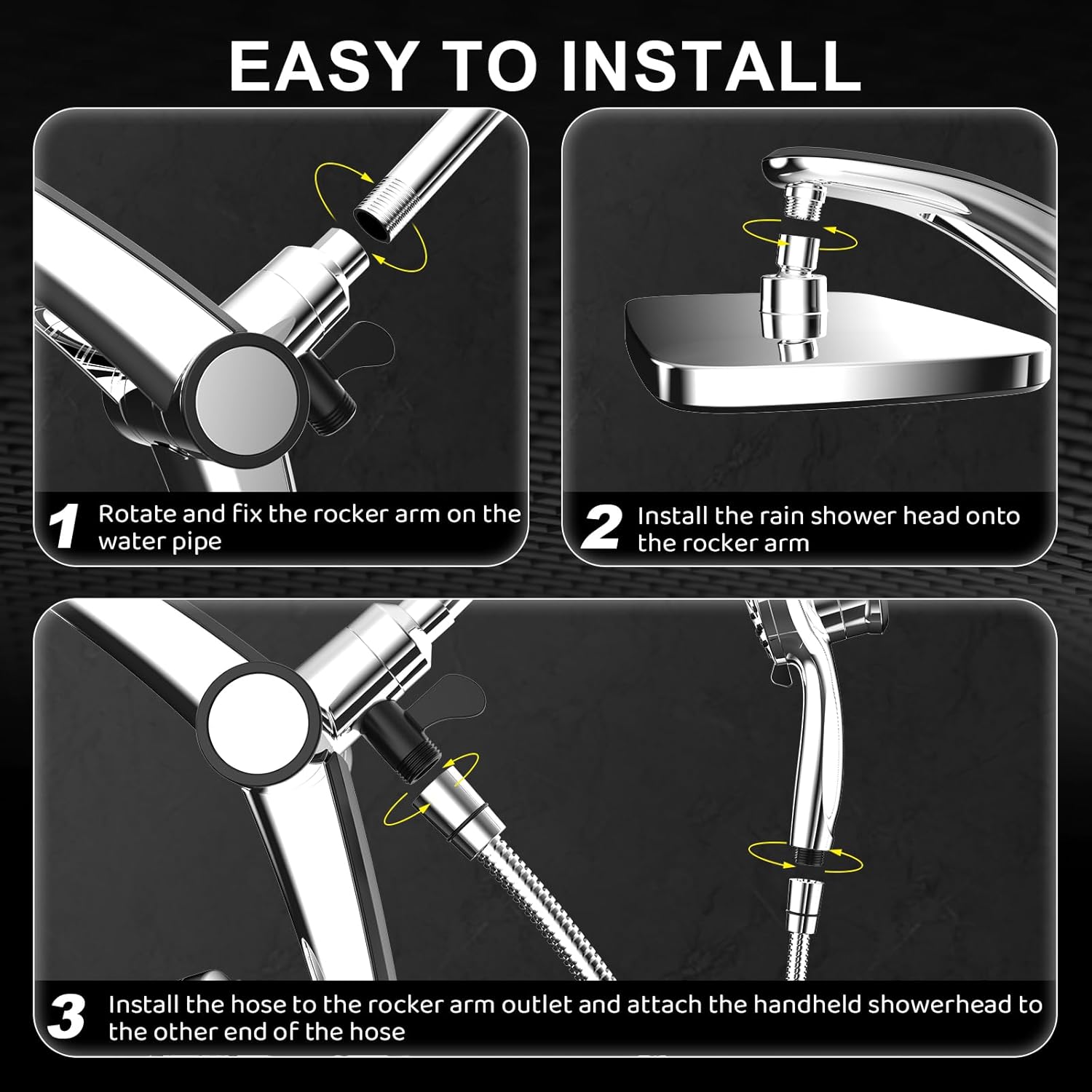 ​12 Inch Rainfall Square Head & Self-Cleaning Nozzles​ Immerse in pure luxury! The large ​12 inch square rain shower head​ delivers a full-body ​rainfall​ sensation. Enjoy complete coverage and relaxing ​rain shower head​ showers with ​easy-clean nozzles that resist clogging.