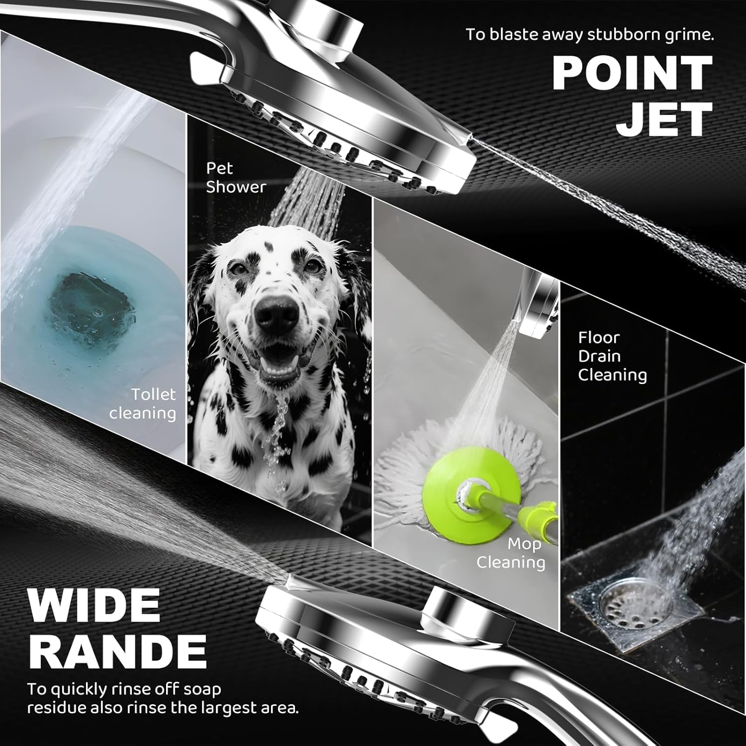 ​10-Setting High Pressure Handheld Sprayer (Clean & Versatile)​​ Unleash versatility with the ​handheld shower head​! Choose from ​10 powerful spray settings, including ​2 turbo jets perfect for rinsing pets, cleaning bathrooms, or powerful body massage. Tackle any task.