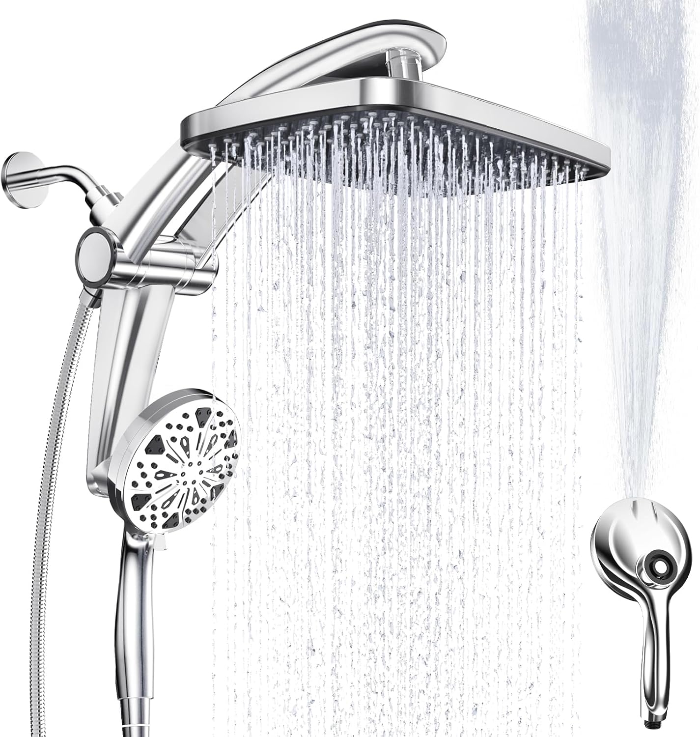 Rain Shower Head with Handheld High Pressure rainfall Shower Heads with Handheld Spray Combo Adjustable one-piece stand daul shower head Built-in Magnetic Docking and Power Jets