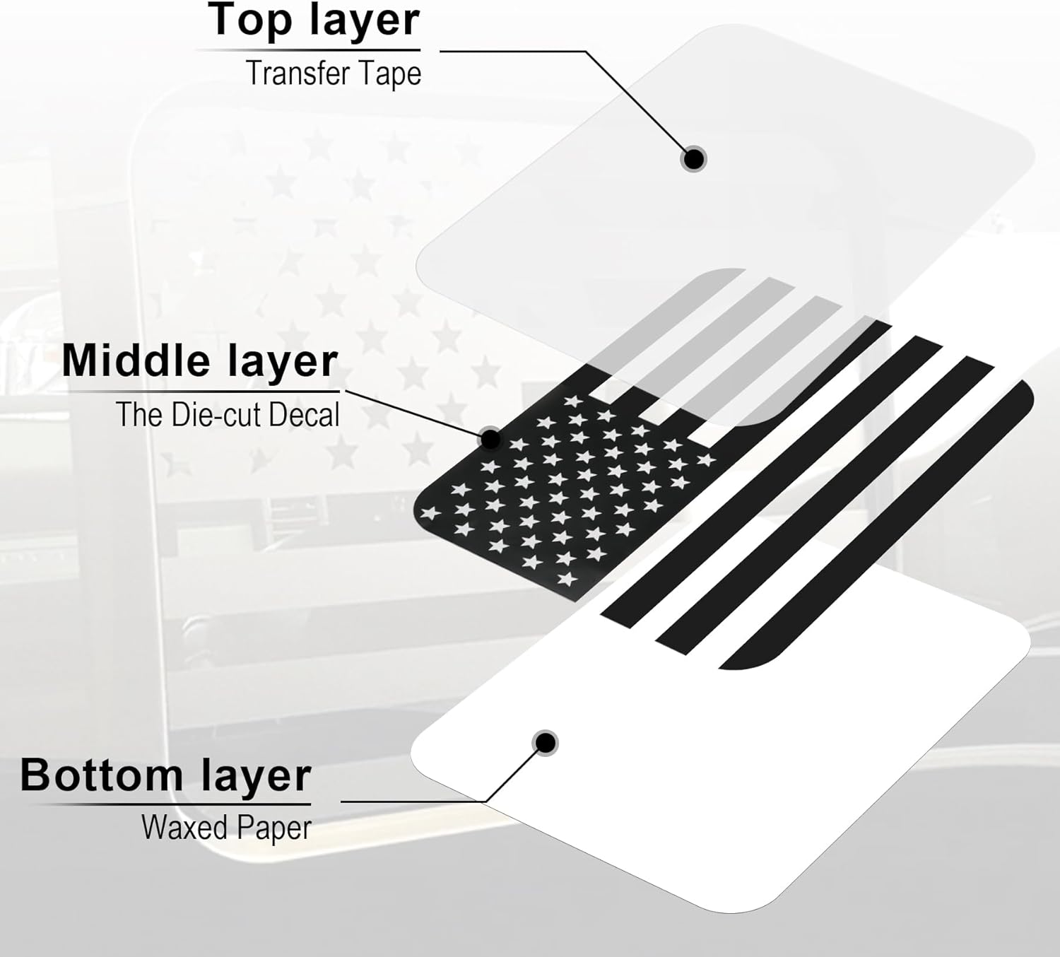 Durable & Weather-Resistant Vinyl – Crafted from high-grade adhesive vinyl, this American Flag Decal with stands harsh weather, UV rays, and car washes. The fade-resistant material ensures long-lasting vibrancy, so your truck stays stylish through every season.