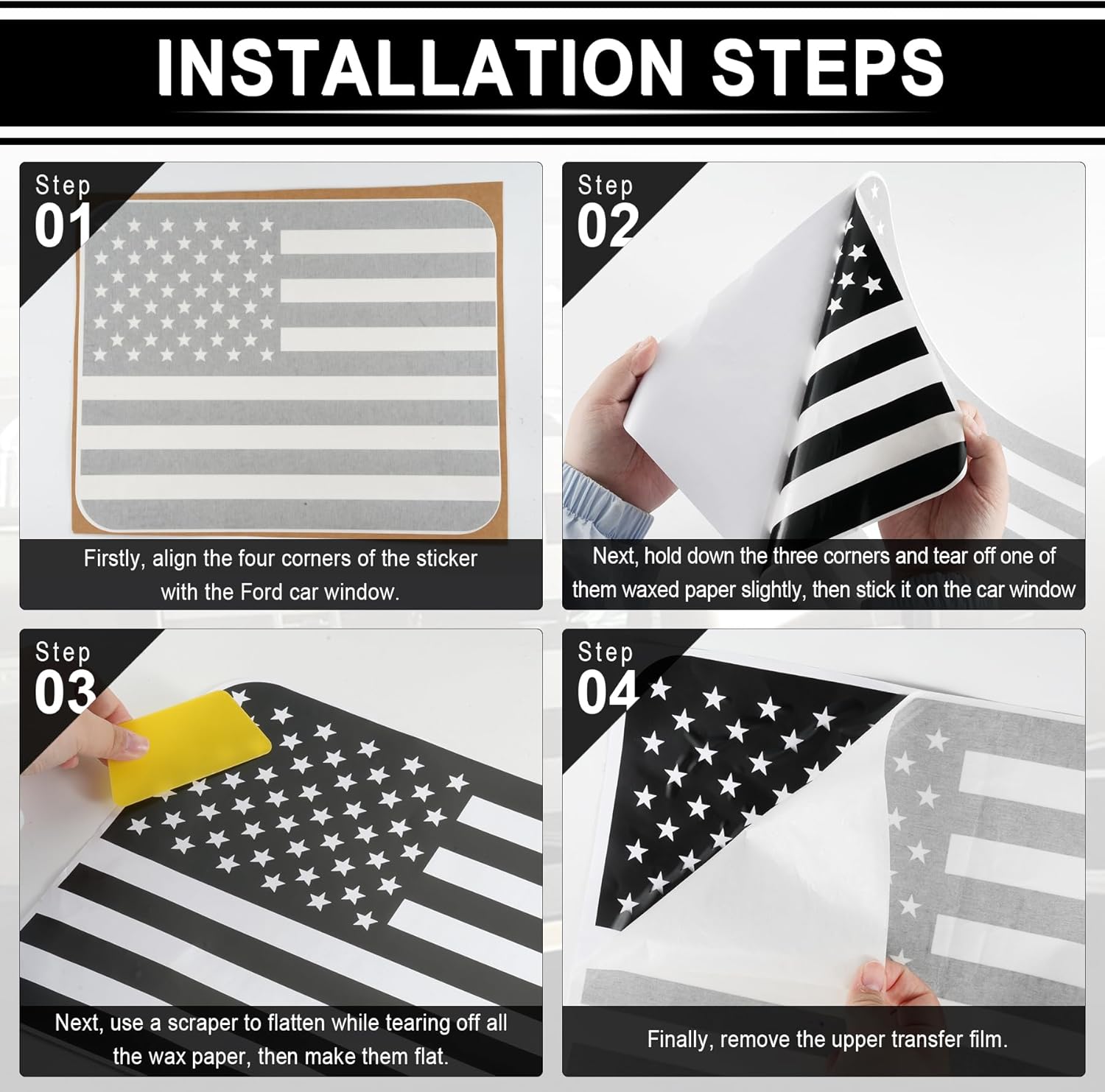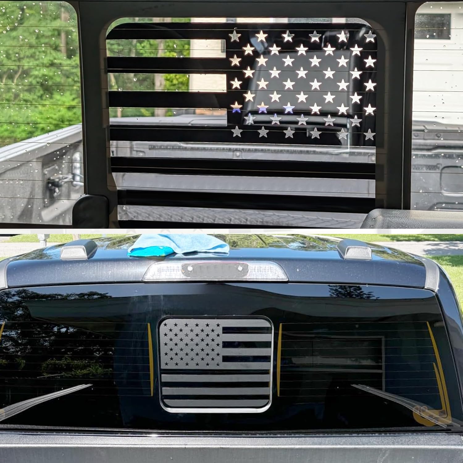 Matte Black Design – Upgrade your Ford F150, F250, or F350 with this striking American Flag rear window decal. Made from high-quality vinyl, this matte black decal features a bold USA flag design, adding a rugged and patriotic look to your truck while showcasing your pride. Perfect for truck owners who love custom accessories