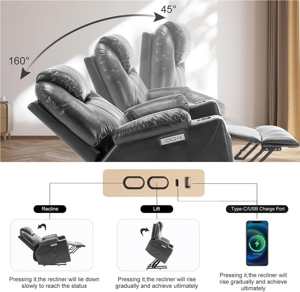 Remote Control Convenience: Easily operate lift, recline, massage, and heat with the included remote control. This user-friendly reclining chair puts comfort and control within reach for both adults and seniors.
