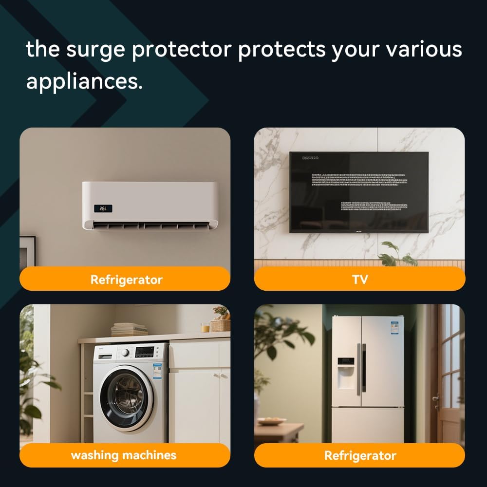 Premium Surge Protection Components. Built with 8 high-quality Thermally Protected MOVs sourced from Taiwan, offering excellent energy dissipation, fast reaction to surges of varying intensity, increased redundancy, reduced risk of thermal failure, and an extended operational lifespan.