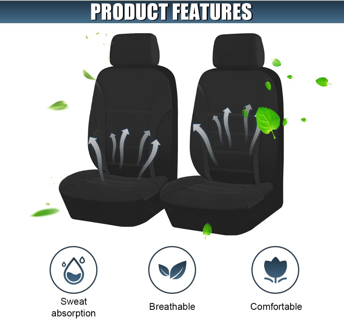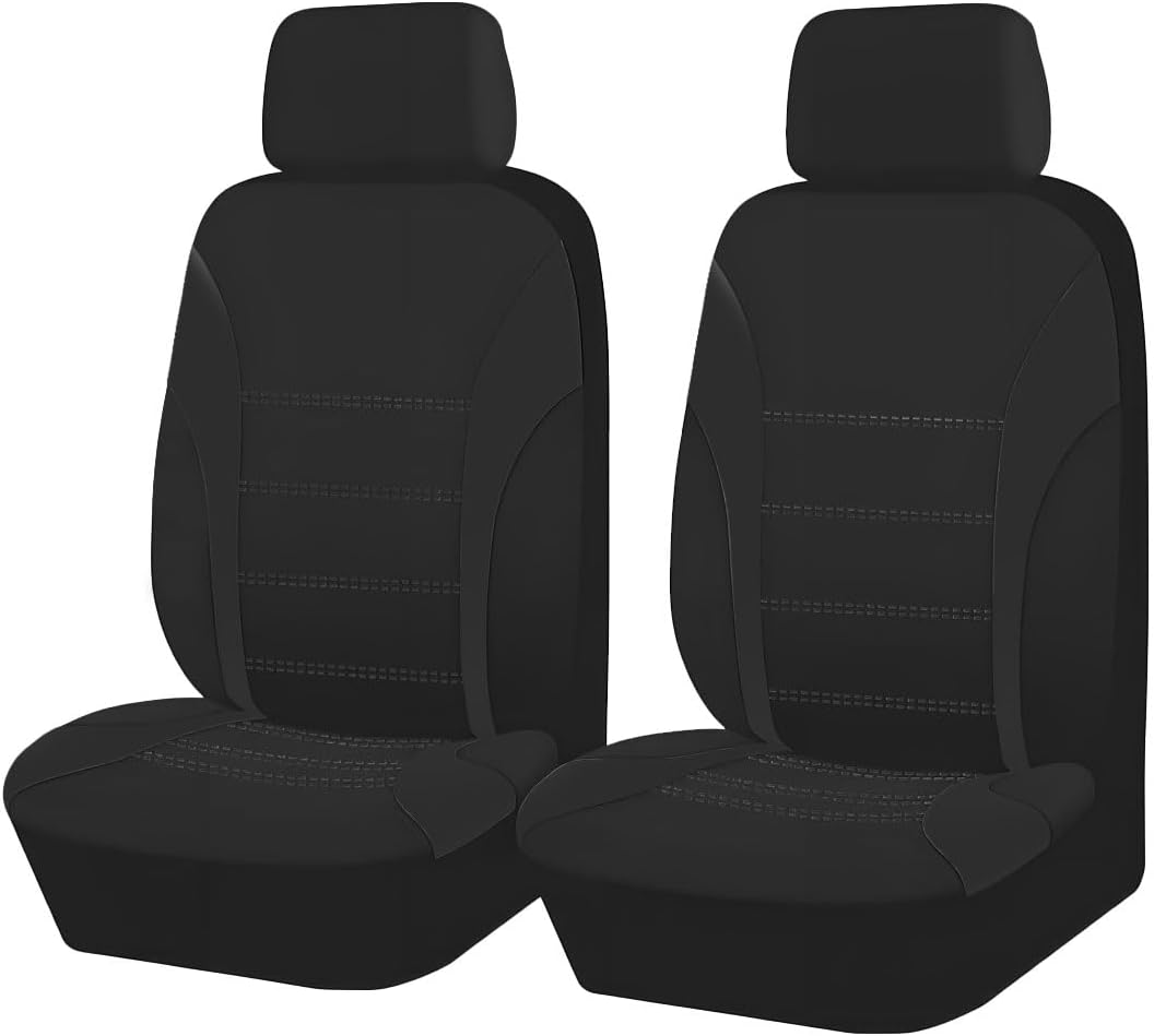 2PCS Car Front Seat Covers, Comfortable Breathable Automotive Seat Covers with Removable Headrest Cover, Sporty Car Seat Protector Cushion for Cars, Trucks, SUVs (Black)