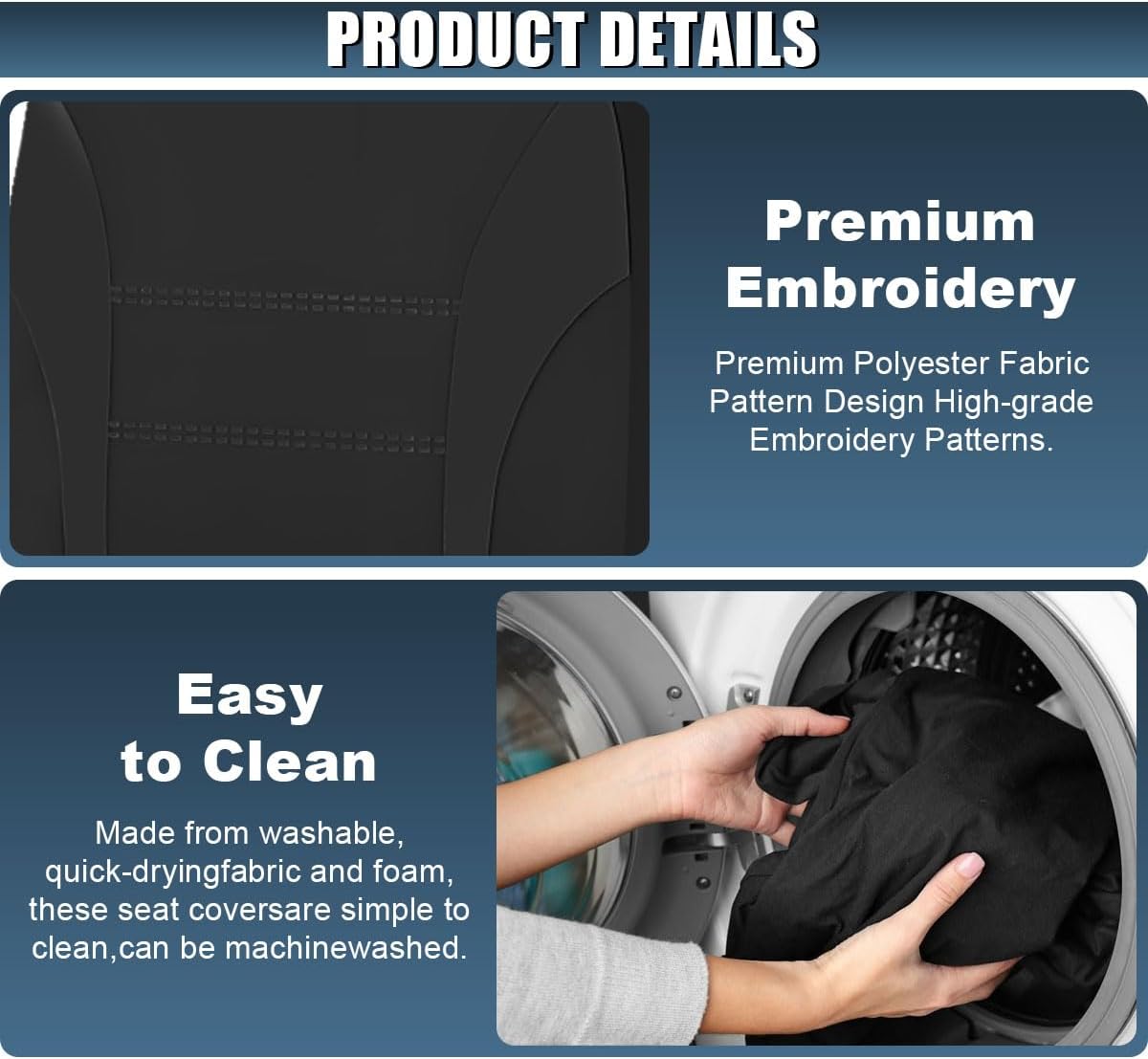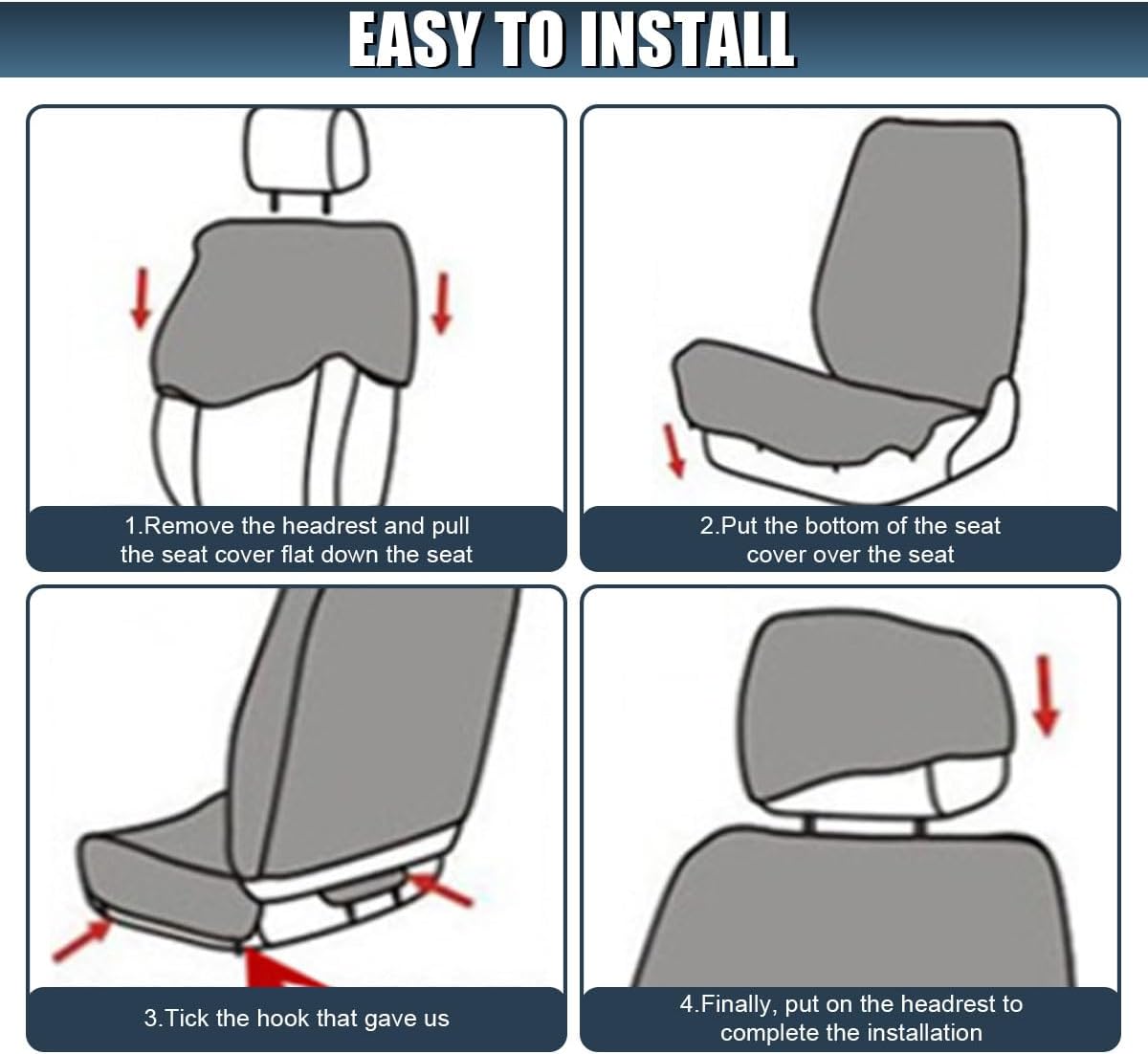 【Universal Fit】:The car seat covers adopt a universal design and can be flexibly stretched to easily adapt to the front seats and headrests of various models, such as sedans, SUVs, and trucks, to meet the needs of various car usage scenarios. This car seat protector cover is machine washable, and everyday stains can be removed by wiping with a damp cloth. It retains its shape and function after multiple washes, making it easy to keep your car clean and extend the life of your seat cover.