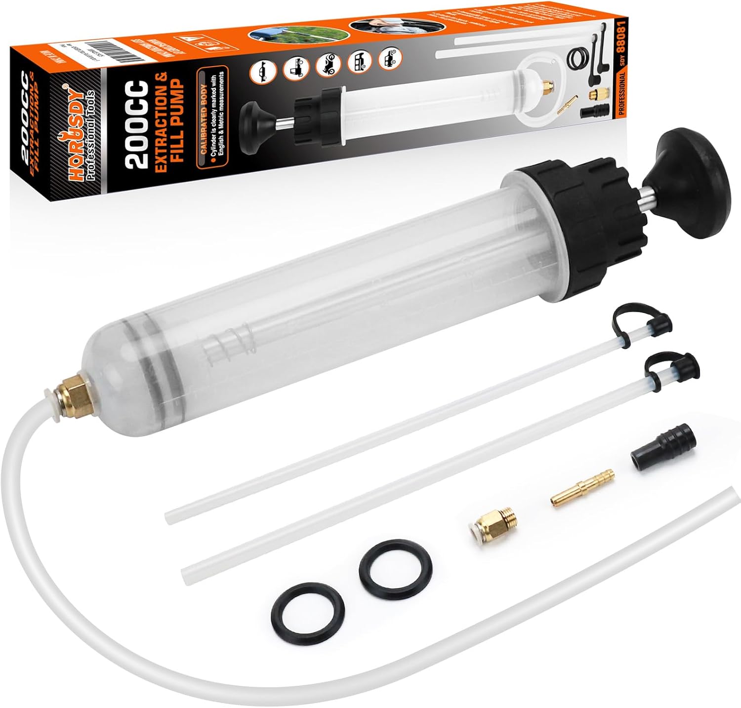 HORUSDY 200cc Fluid Extractor Syringe Oil Pump, Fluid Evacuator with 23" Flexible Hose, 12" Fine & Coarse Hoses, for Automotive, Motorcycle, Marine & Equipment Maintenance (9PCS)