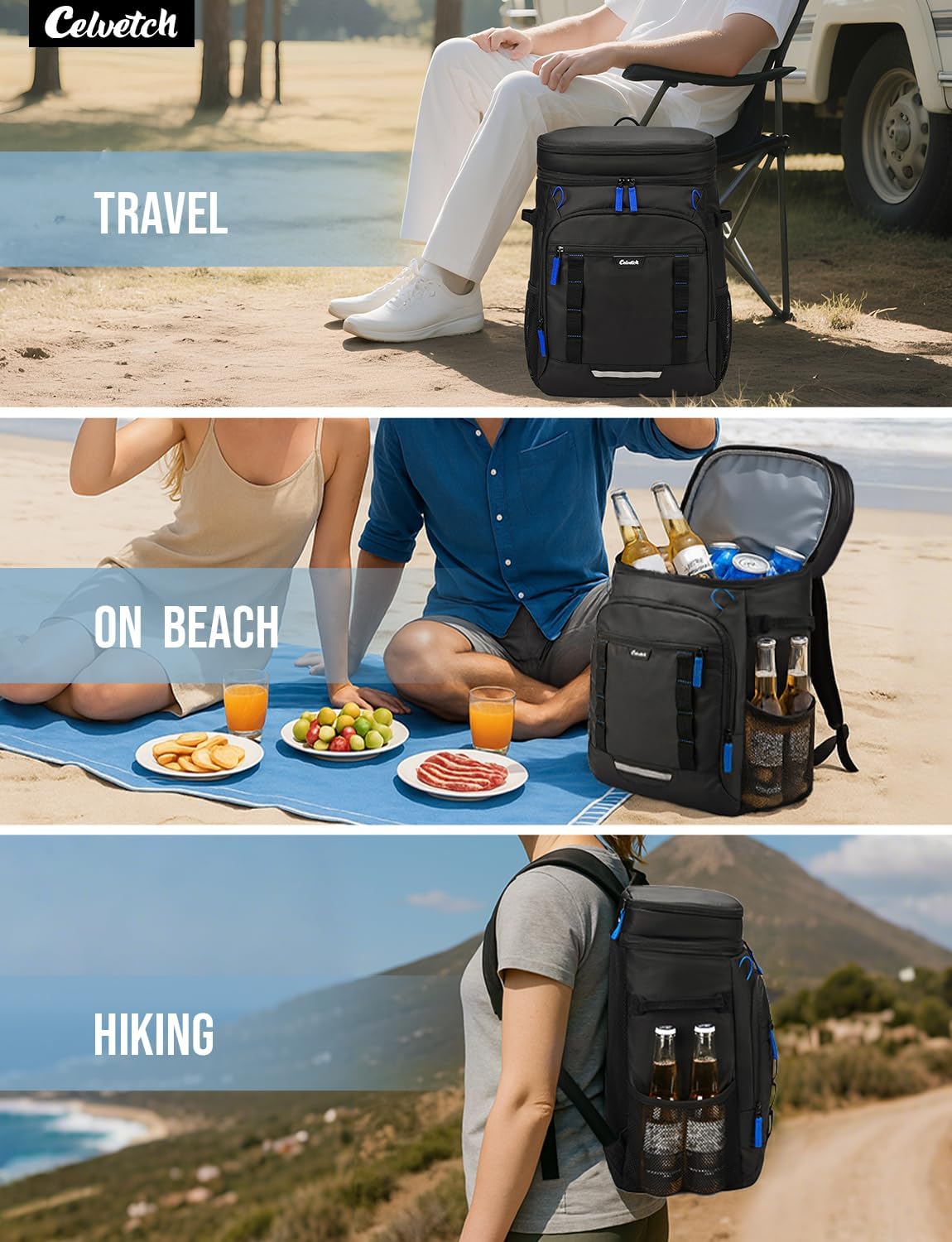 36-40 Cans Large Capacity: Celvetch cooler backpack measures 17.5''H x 11.5''L x 7"W and can hold up to 36-40 cans (330ml). This Cooler offers enough space to pack meals, tall beverages, snacks, and other necessary items. Perfect for outdoor activities to keep drinks icy and food fresh