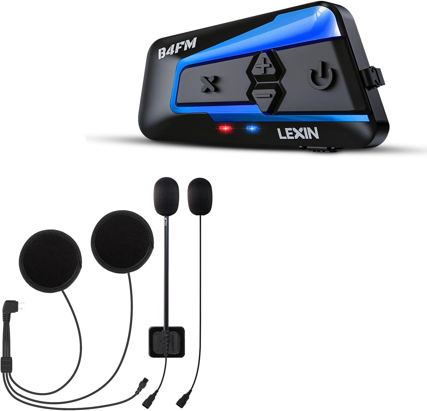LEXIN B4FM Motorcycle Bluetooth Headset, 10-Way 1.2 Miles Helmet Communication Systems with Music Sharing, FM Radio, Hi-Fi Stereo Sound, IP67 Waterproof, Universal Pairing, Single Pack, with Audio Kit