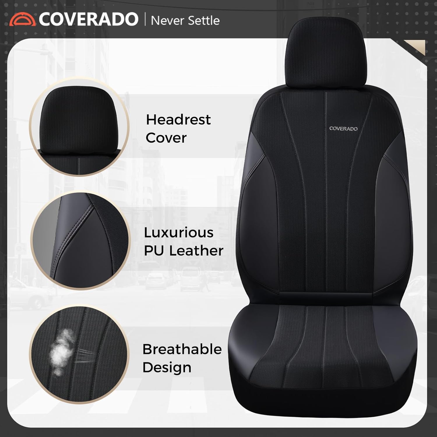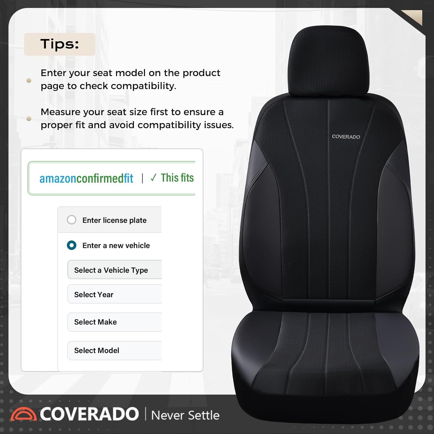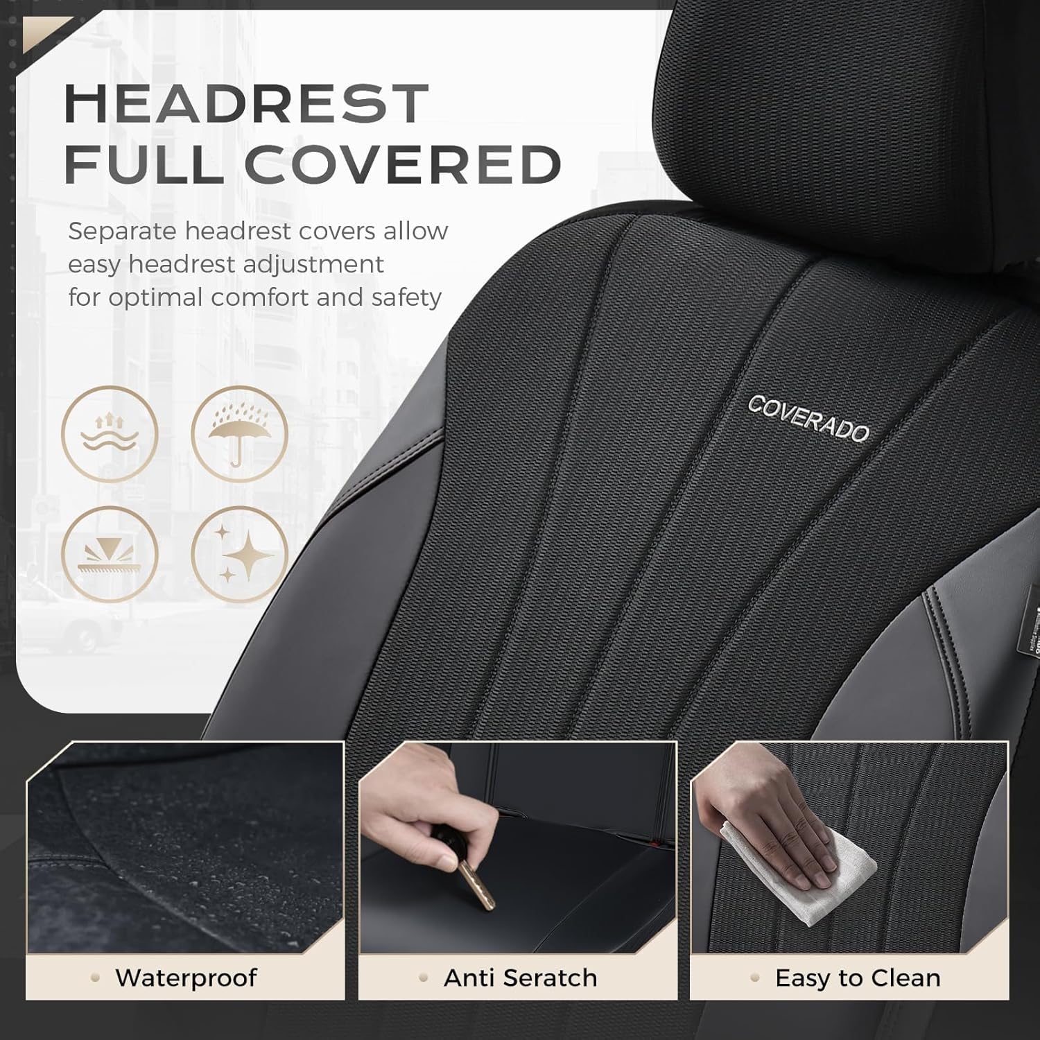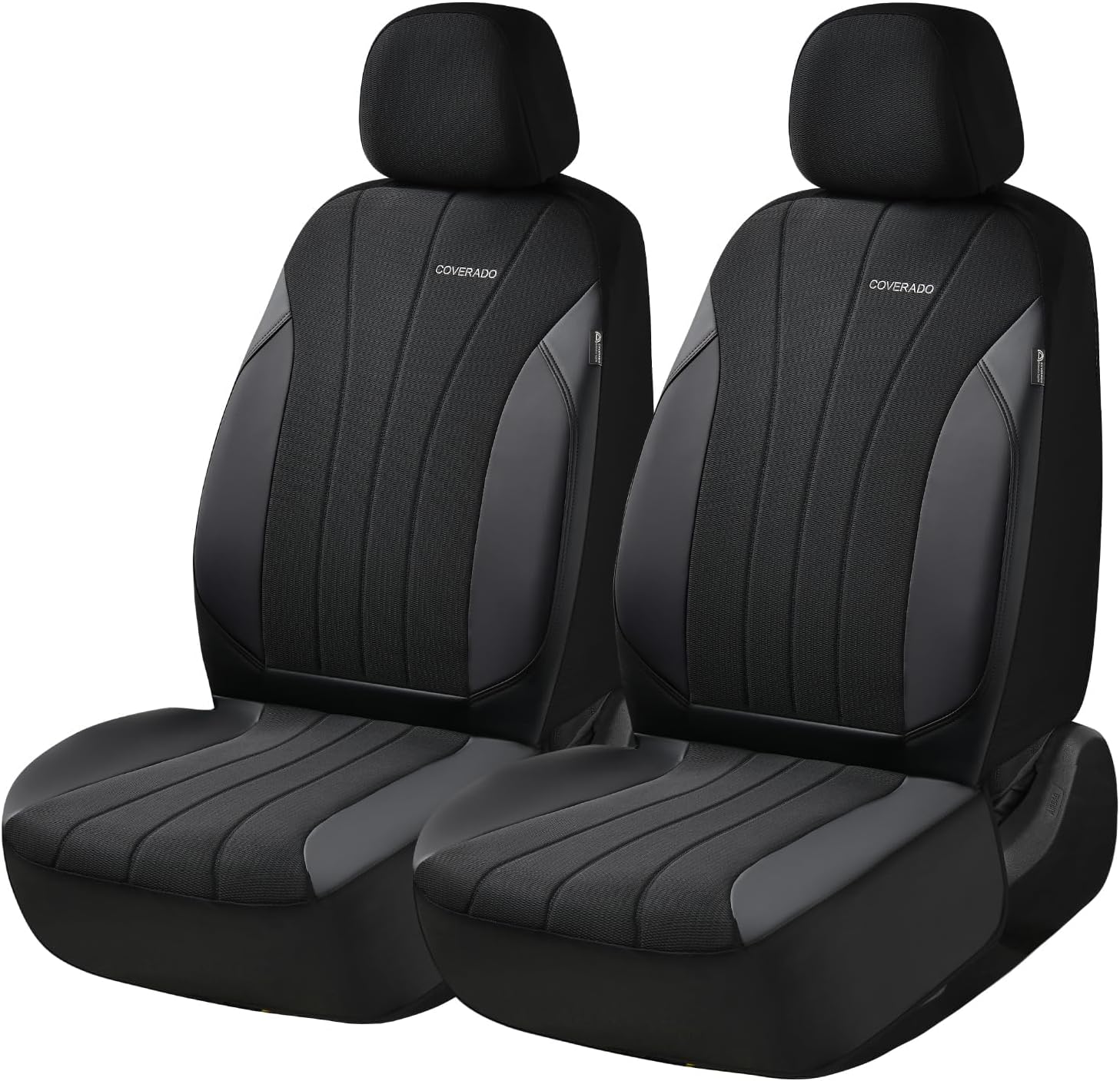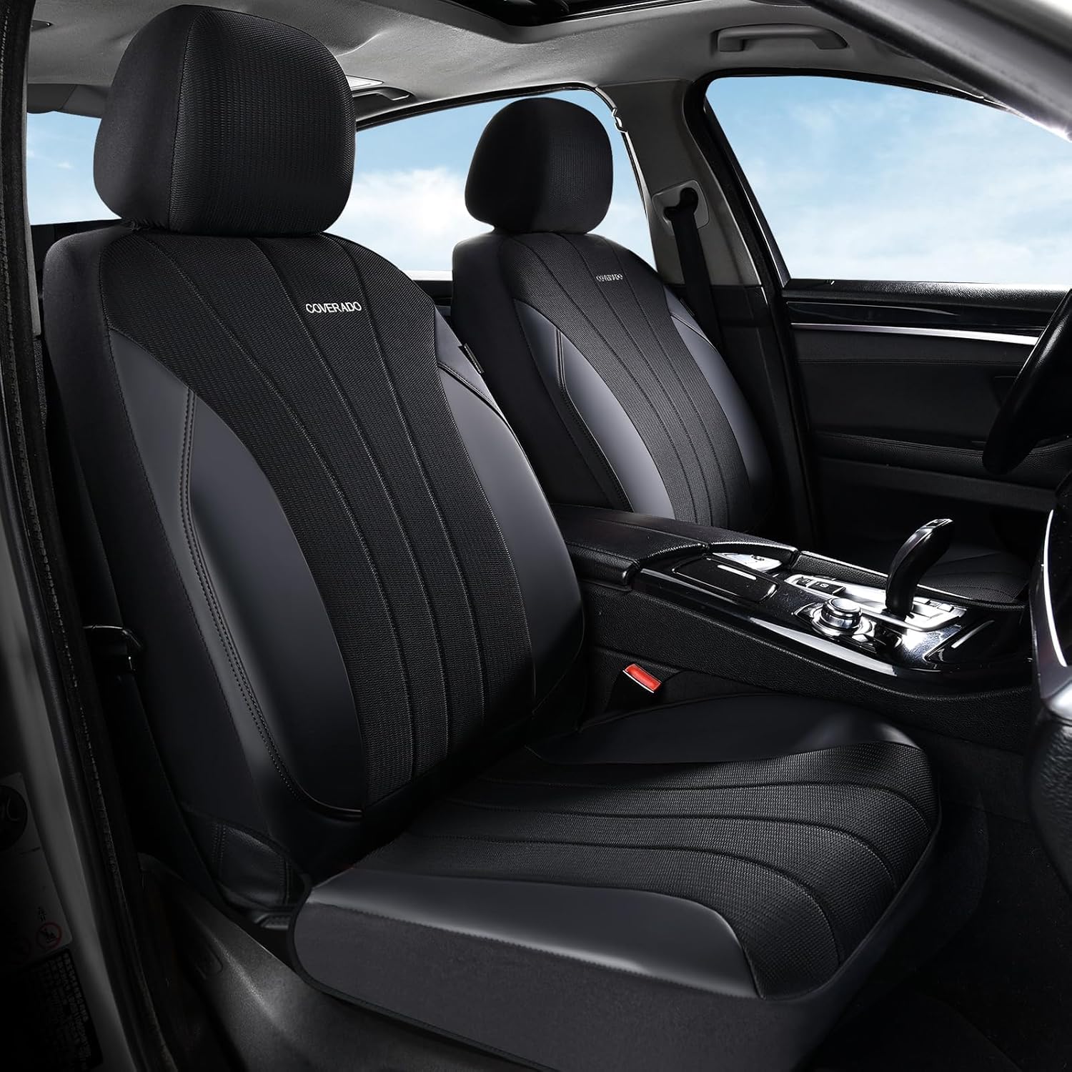 Coverado Car Seat Covers, Waterproof Automotive Seat Protectors, Driver Protectors Universal Fit for SUVs, Trucks, Sedans,Car Accessories (Black, FrontPair)