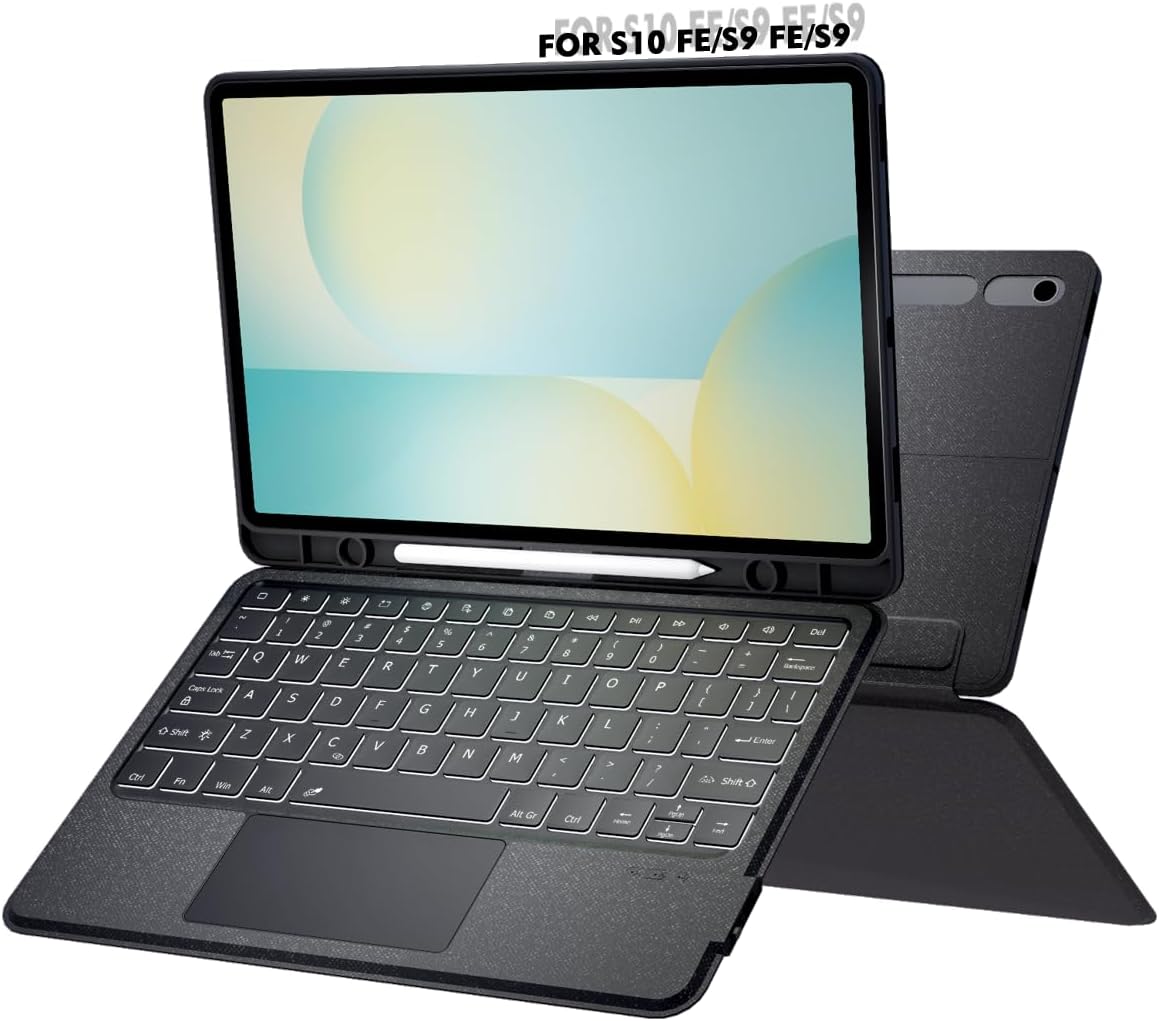 Doohoeek Keyboard Folio for Samsung Galaxy S10 Fe 10.9" 2025 / S9 FE / S9, Bluetooth Keyboard Touch with 7-Color Backlit & Any-Angle Stand & Cover Case for Galaxy S10 Fe 10.9-Inch Accessory