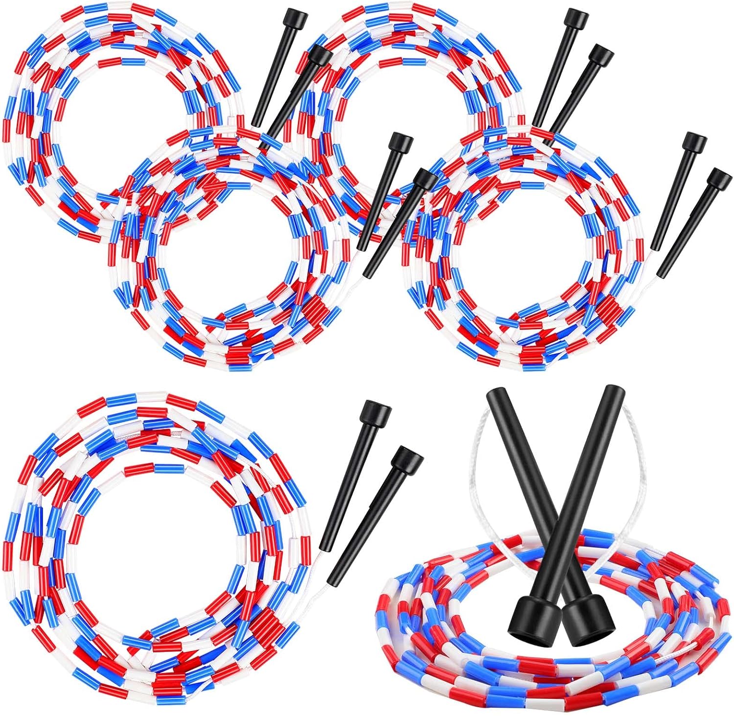 Features: Our outdoor jump rope can be a sweet and ideal gift for your friends, boyfriends, girlfriends, classmates, colleagues, mothers, fathers, children, family members and others, to encourage them to do physical exercise, which can enhance your relationship. The handles of the segmented jump ropes are designed with thick ends for a comfortable and secure grip, making it an easy, practical, and portable workout choice, and it is also suitable as a reward in school sports activities, physical education, or sports as a reward to students. Specifications: Material: nylon and plastic Main color: red, white and blue Size: approx. 16 ft/ 4.8 meters Package includes: 6 x Segmented jump ropes Warm notes: Please check the size before ordering. Manual measurement, please allow slight errors on size. The color may exist a slight difference due to different screen displays. Winding risk may exist, please keep away from little kids.