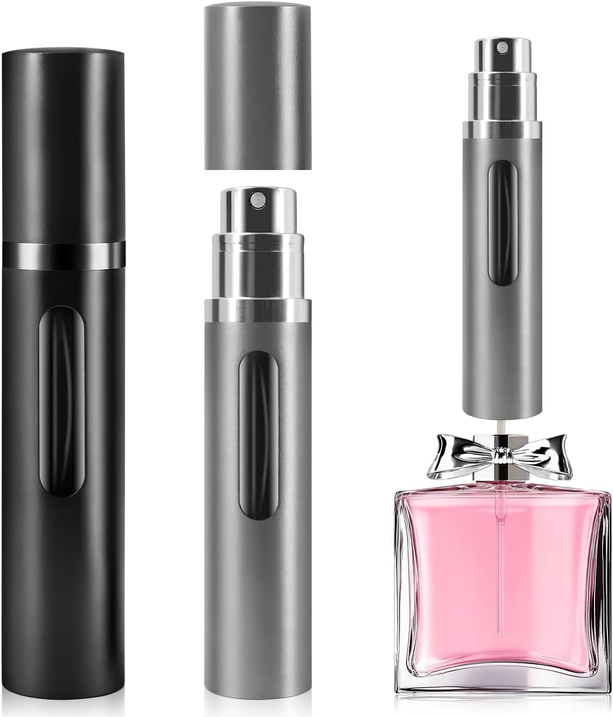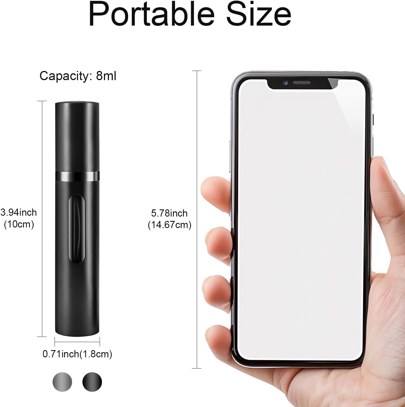 8ml 2pcs Refillable Travel Perfume Bottle, Portable Leak-Proof Mini Perfume Atomizer with Bottom-Filling Design for Women & Men Ideal for Cruise, Car Trip, Travel (Black-Grey)